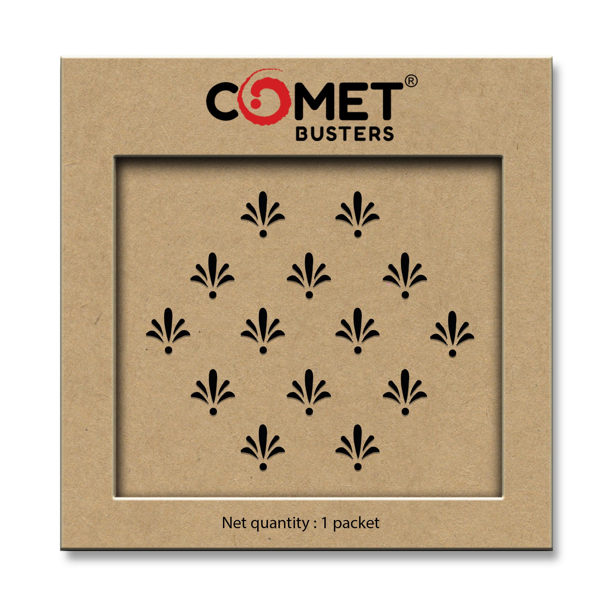 Comet Busters® Black Designer Fusion Abstract Bindis feature a stylish multi-stroke design with a bold finishing dot. These lightweight, skin-safe bindis add an elegant modern touch to festive and everyday looks. Easy to apply, comfortable to wear, and reusable—perfect for women and girls who love chic abstract styles.