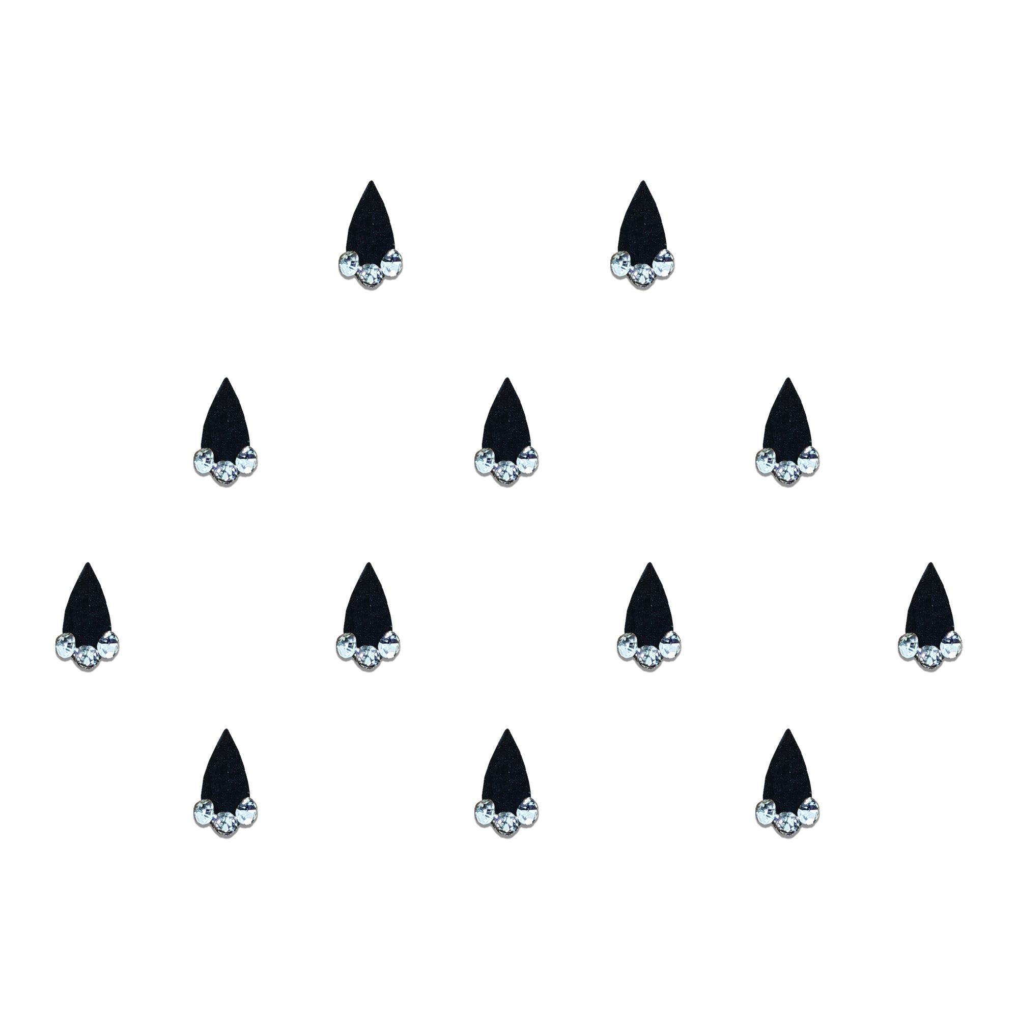 Comet Busters® Black Tear Drop – Diamond, Velvet – Handcrafted, Reusable & Skin-Friendly Bindis for Party Wear (6.5mm) – 12 Forehead Bindi Stickers for Women & Girls – BIN2471