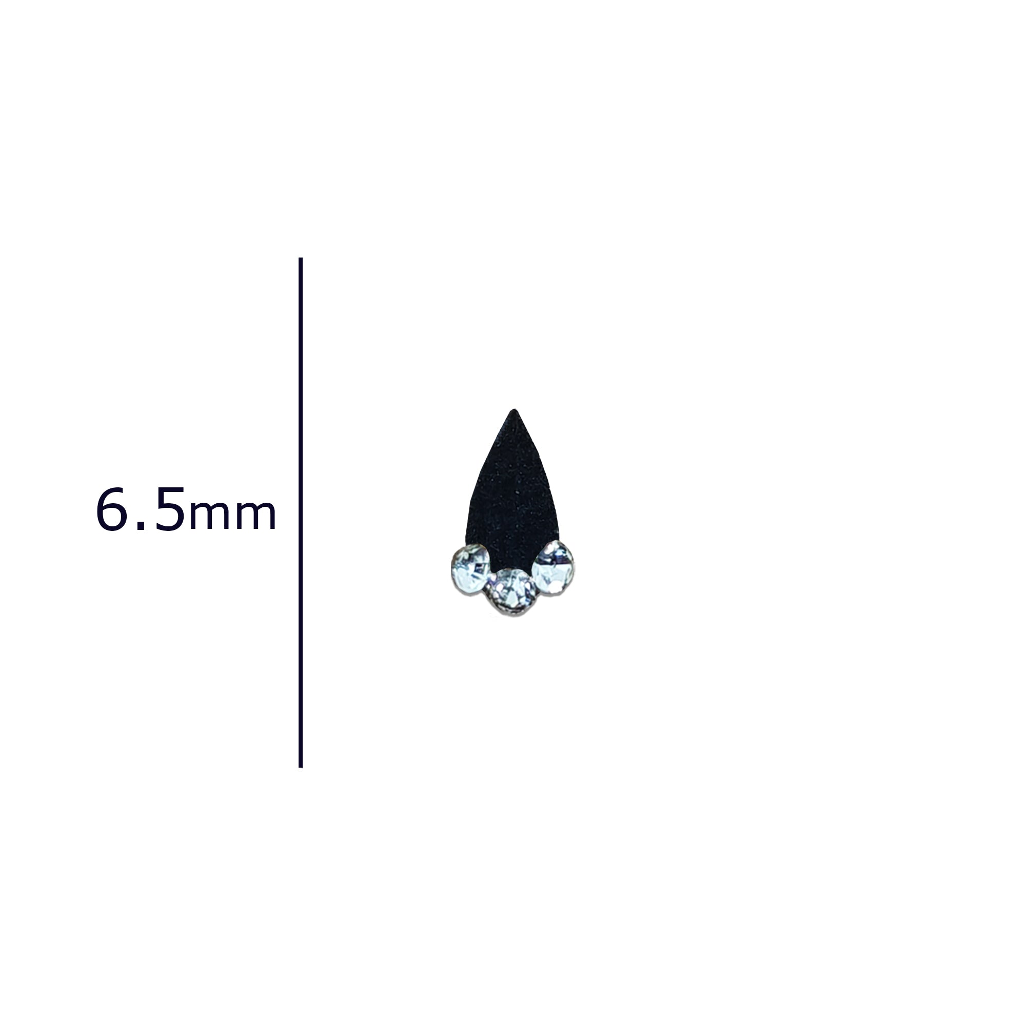 These elegant black tear drop bindis are accented with three shimmering diamond dots, creating a chic and graceful look that enhances every outfit. Measuring approximately 6.5mm, they offer a balanced design that’s perfect for festive wear, weddings, parties, or daily elegance.