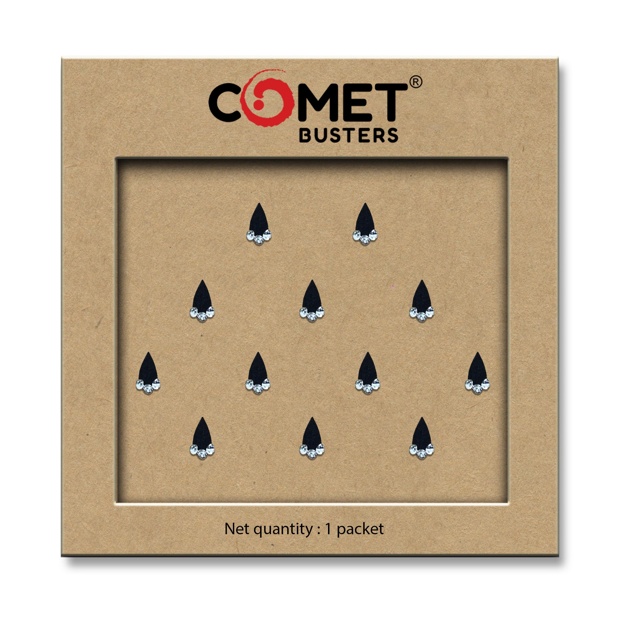 Add a touch of refined beauty to your look with Comet Busters® Black Tear Drop Bindis with Diamond Dots – where sophistication meets sparkle.