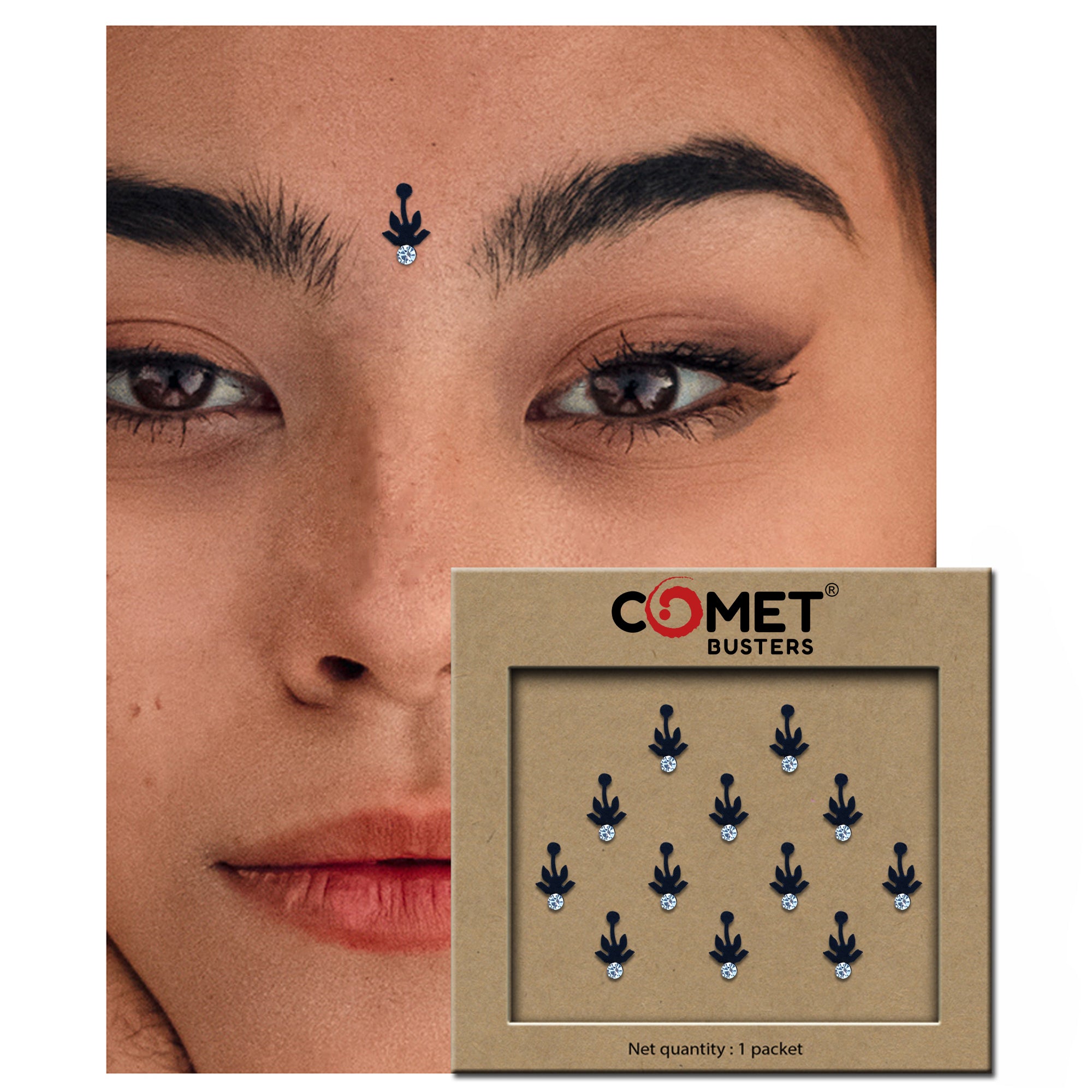 Comet Busters® Black Artistic Abstract Bindis – PVC, Diamond – Handcrafted, Reusable & Skin-Friendly Bindis for Party Wear (10mm) – Forehead Bindi Stickers for Women & Girls – BIN2462