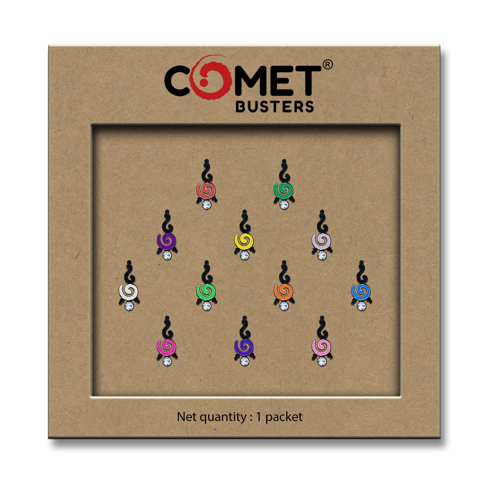 Comet Busters® Multicolor Artistic Abstract Bindis – PVC, Diamond – Handcrafted, Reusable & Skin-Friendly Bindis for Party Wear (10mm) – Forehead Bindi Stickers for Women & Girls – BIN2459
