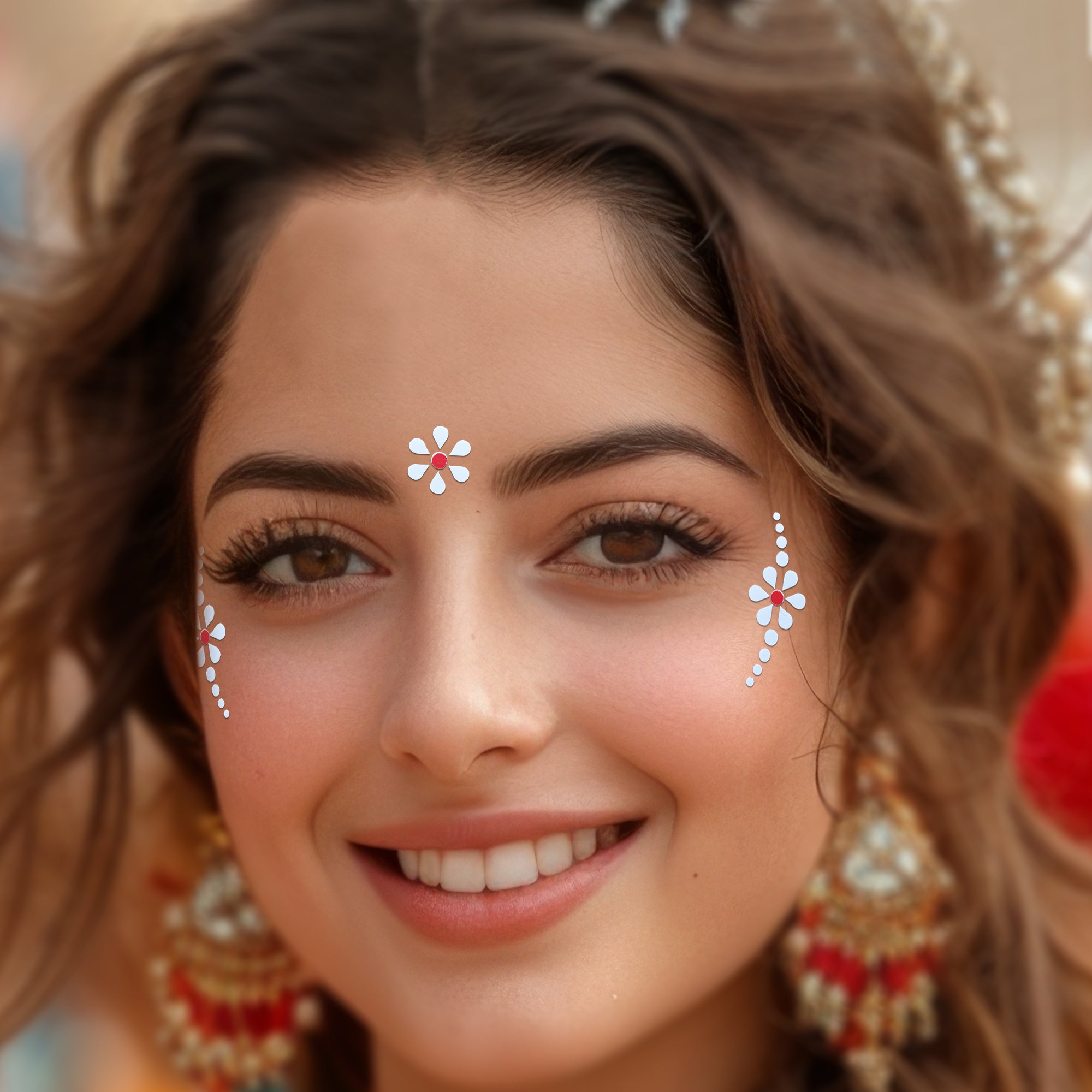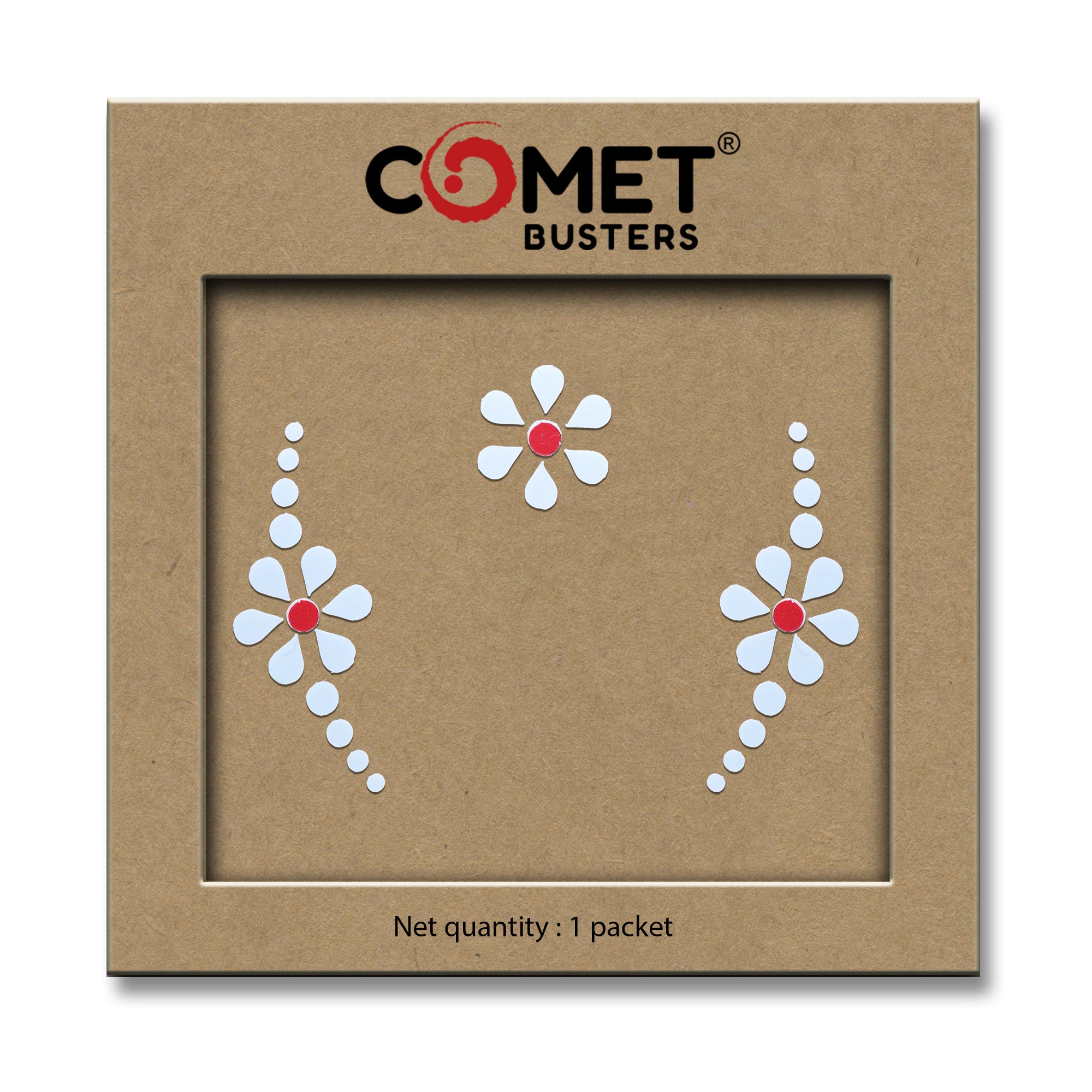 Comet Busters® White, Red, Multicolor Floral, Bengali – PVC – Handcrafted, Reusable & Skin-Friendly Bindis for Bridal Wear (Free Size) – Forehead Bindi Stickers for Women & Girls – BIN2457
