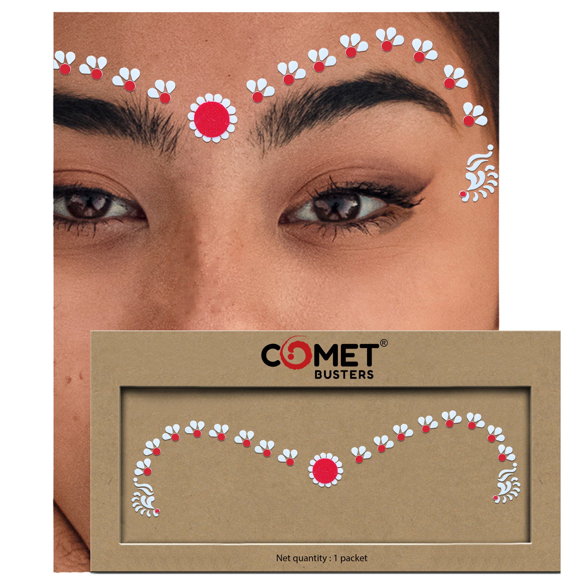Comet Busters® Red, White, Multicolor Fusion Abstract Bindis, Bengali – PVC, Velvet – Handcrafted, Reusable & Skin-Friendly Bindis for Bridal Wear (Free Size) – Forehead Bindi Stickers for Women & Girls – BIN2446