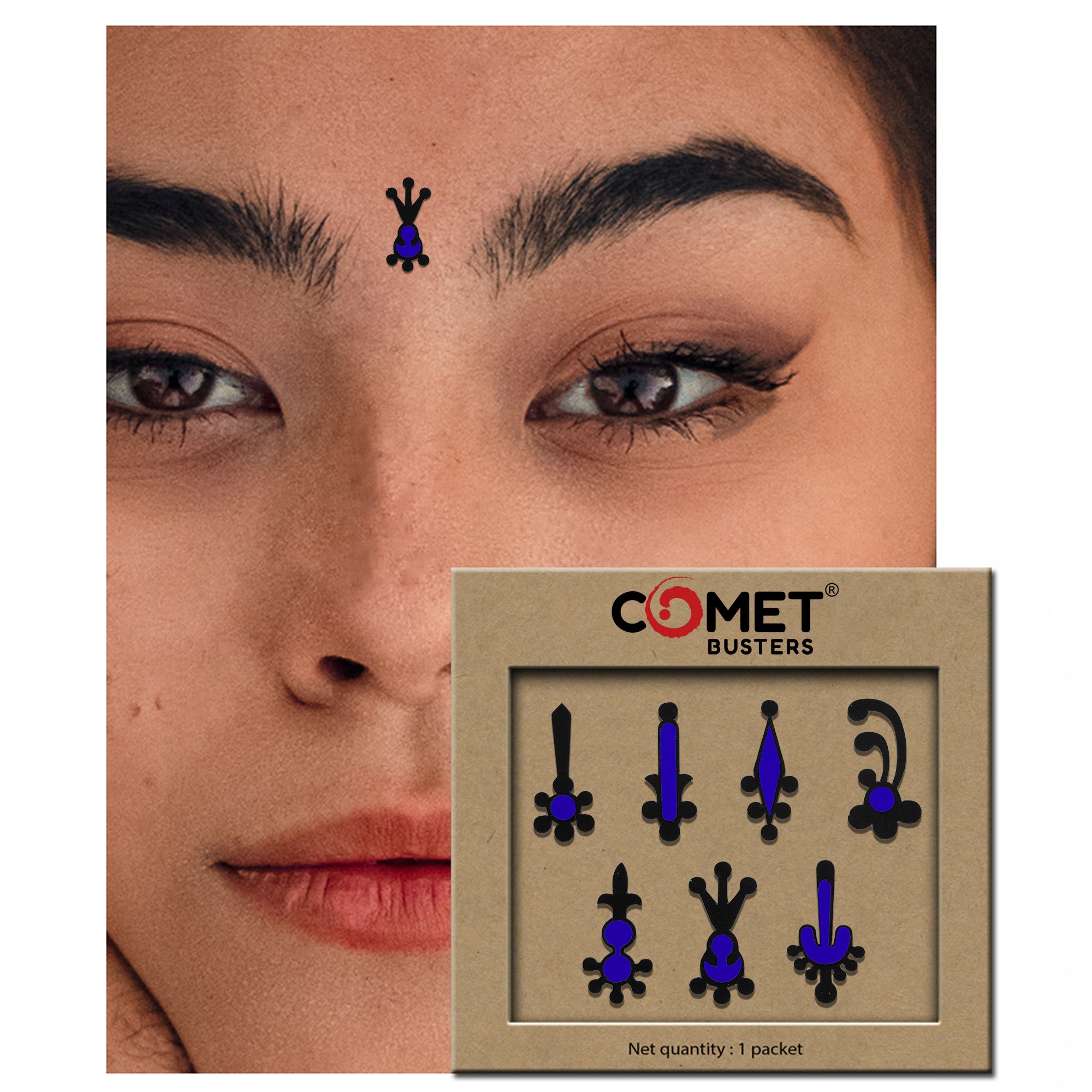 Comet Busters® Black, Blue, Multicolor Fusion Abstract Bindis – PVC – Handcrafted, Reusable & Skin-Friendly Bindis for Casual Wear (15mm) – Forehead Bindi Stickers for Women & Girls – BIN672