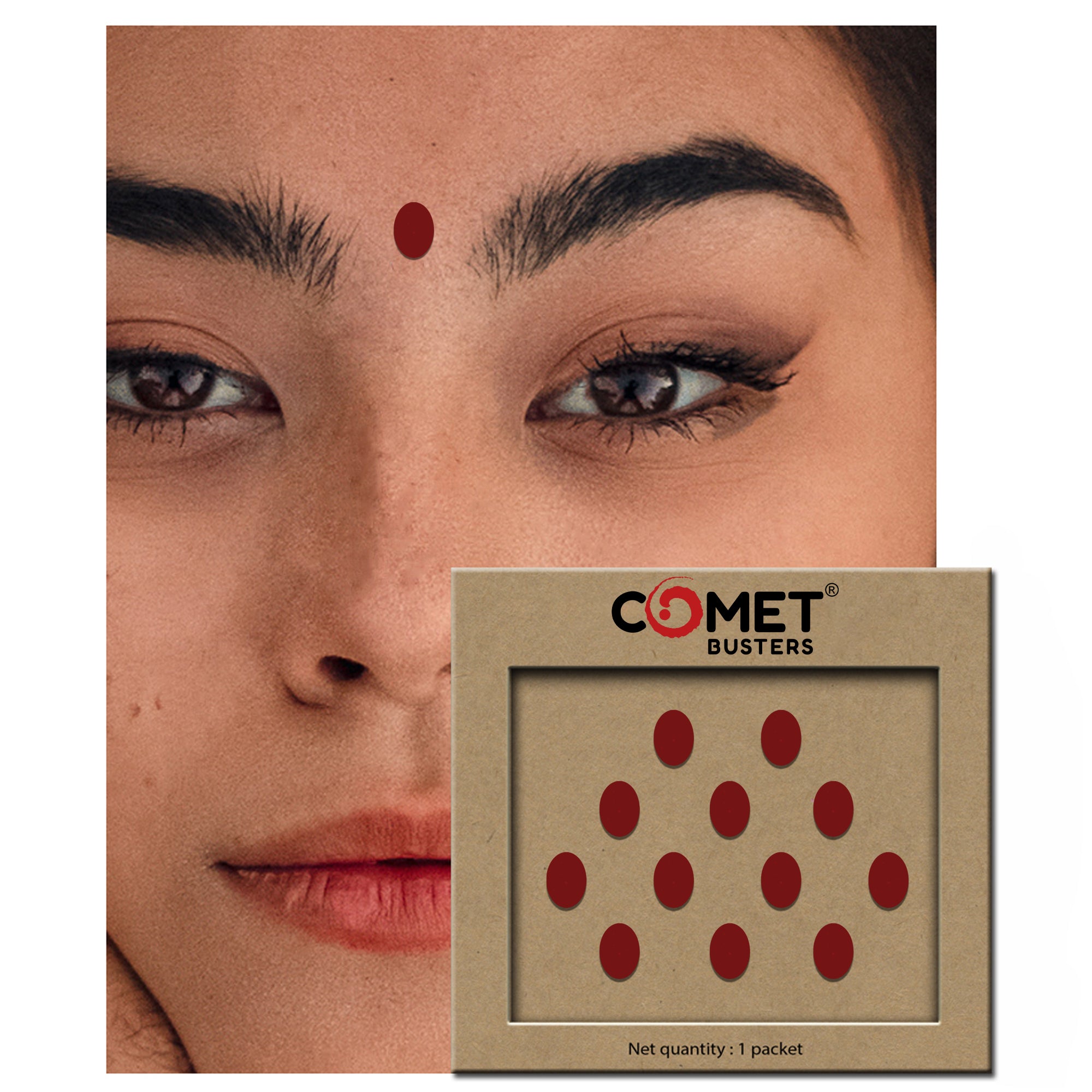Comet Busters® Maroon Oval – Velvet – Handcrafted, Reusable & Skin-Friendly Bindis for Casual Wear (8mm) – Forehead Bindi Stickers for Women & Girls – BIN965