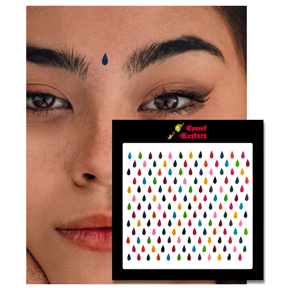 Comet Busters® Multicolor Tear Drop – Velvet – Handcrafted, Reusable & Skin-Friendly Bindis for Casual Wear (7mm) – Forehead Bindi Stickers for Women & Girls – BIN1734