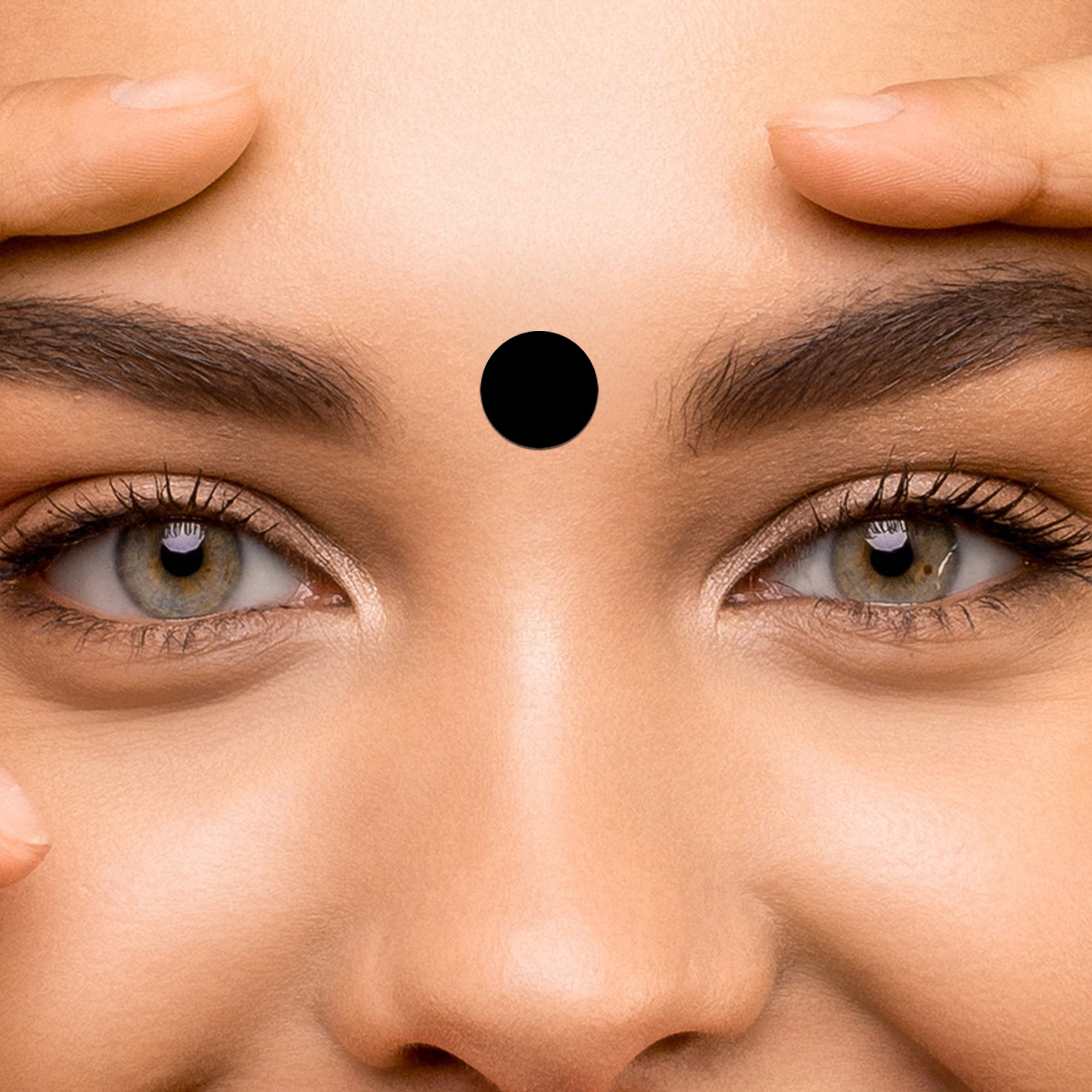 • To apply, gently remove the bindi from its backing and place it between the eyebrows.