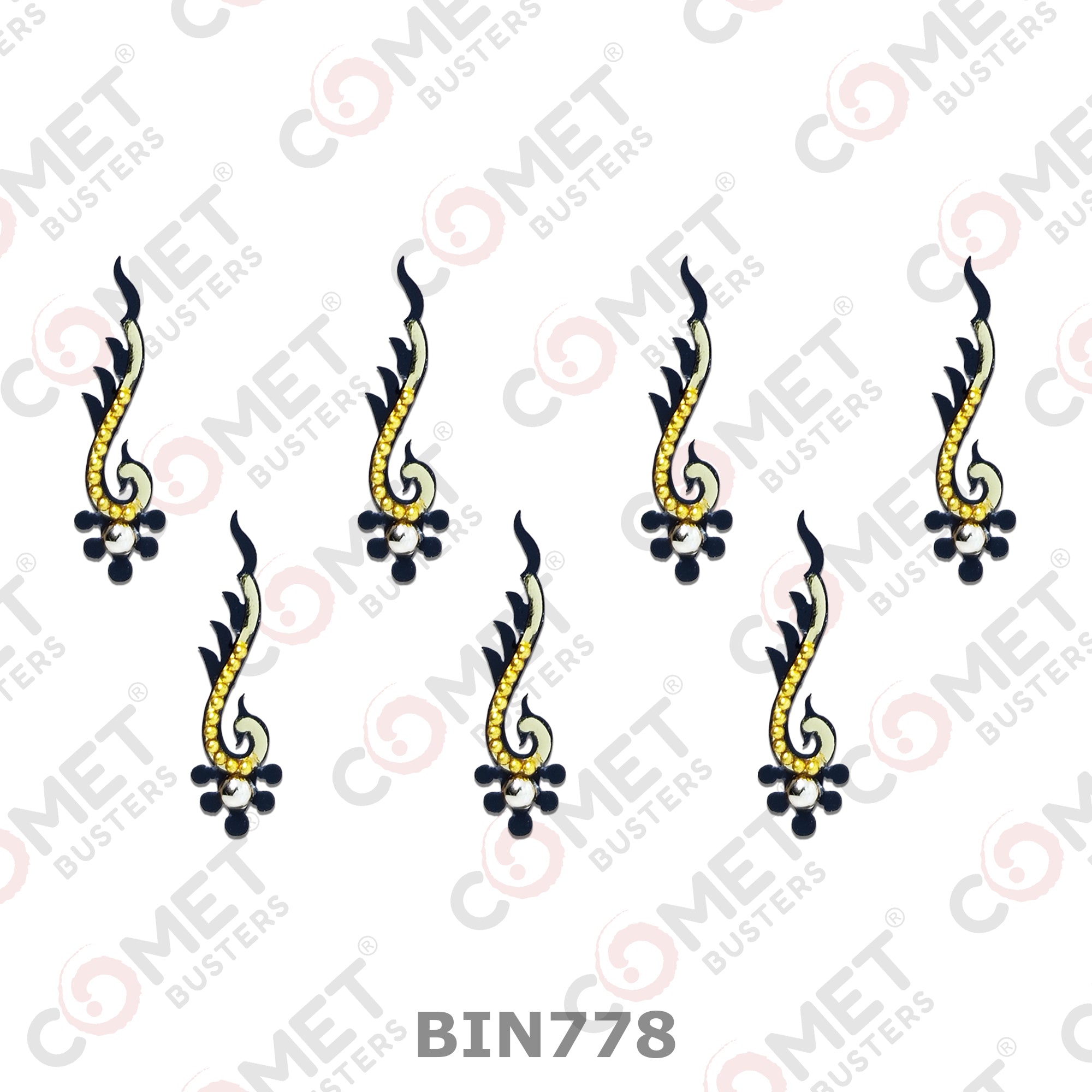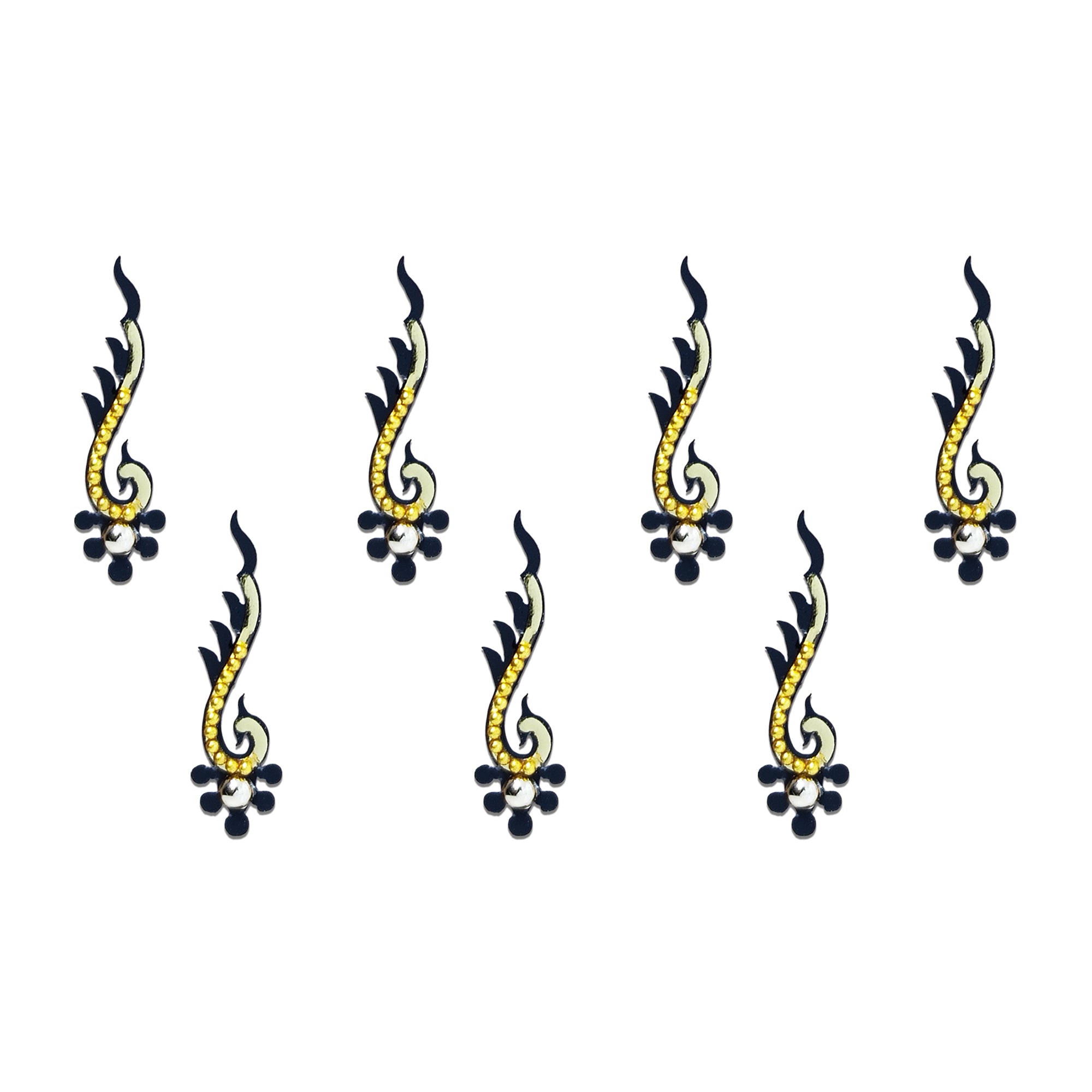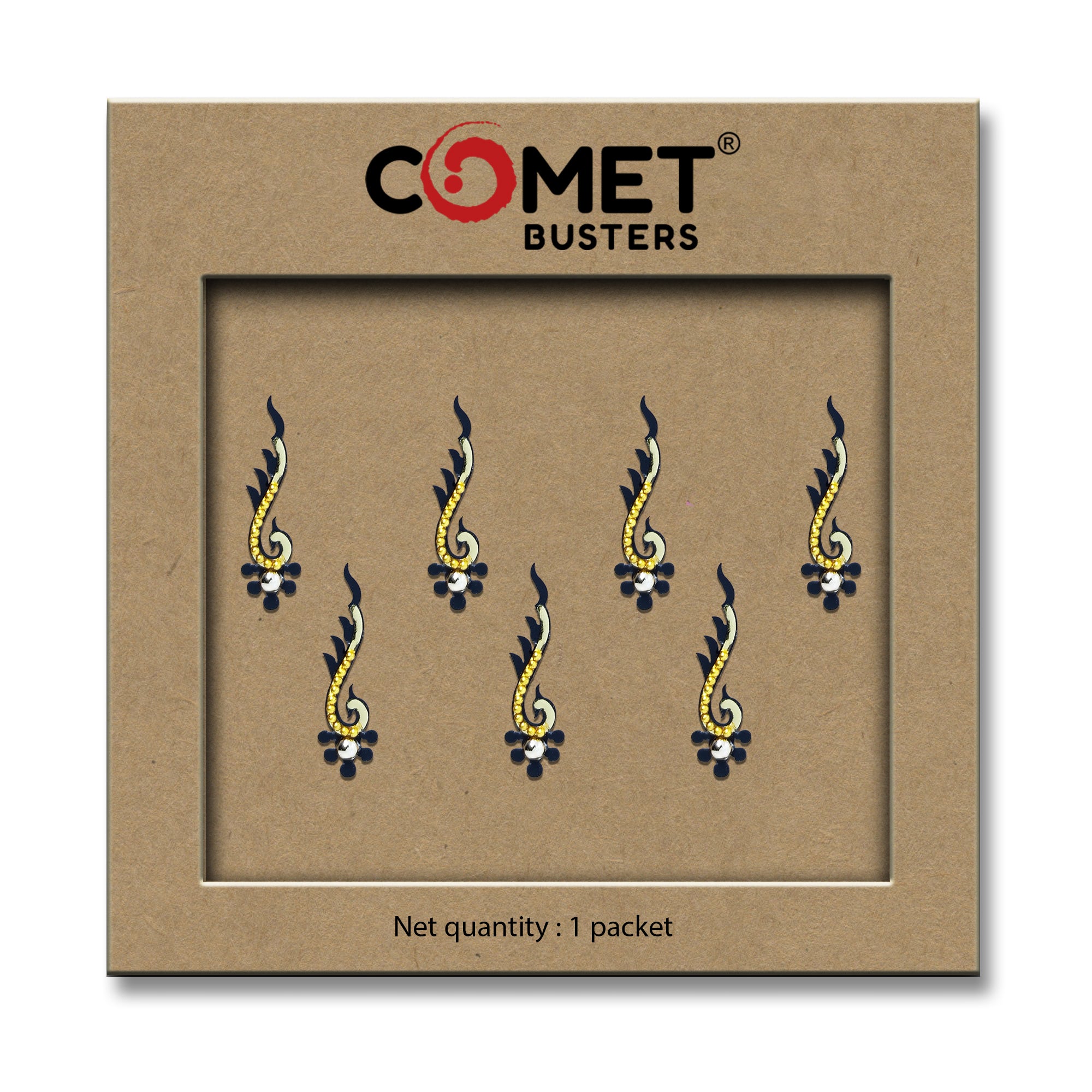 Comet Busters® Black, Gold, Multicolor Artistic Abstract Bindis – Shiny Beads, PVC – Handcrafted, Reusable & Skin-Friendly Bindis for Bridal Wear (20mm) – Forehead Bindi Stickers for Women & Girls – BIN778