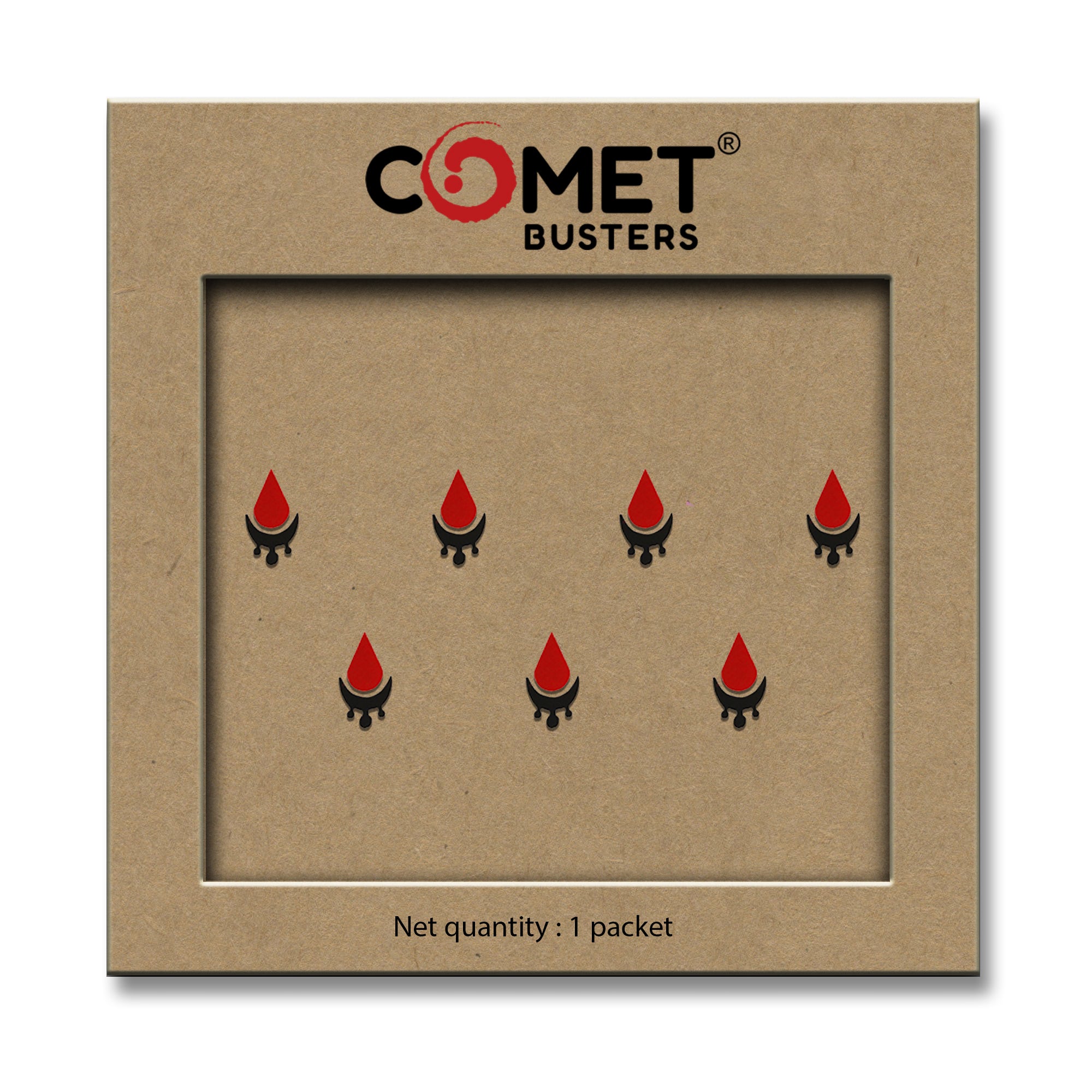 Comet Busters® Red, Black, Multicolor Tear Drop – PVC – Handcrafted, Reusable & Skin-Friendly Bindis for Casual Wear (13mm) – Forehead Bindi Stickers for Women & Girls – BIN821