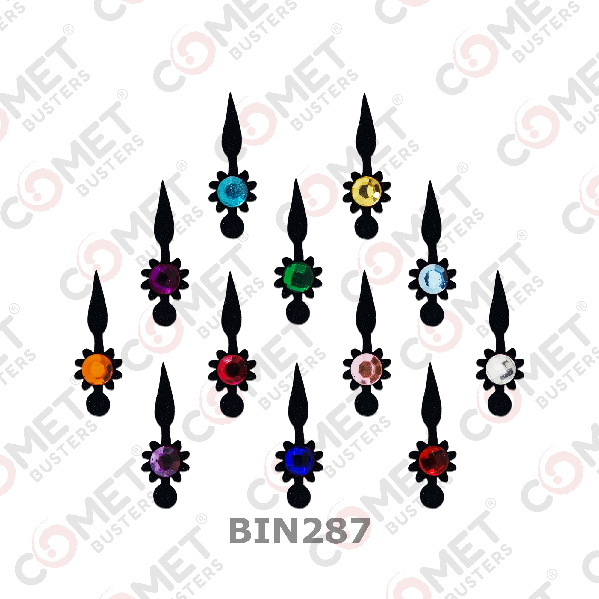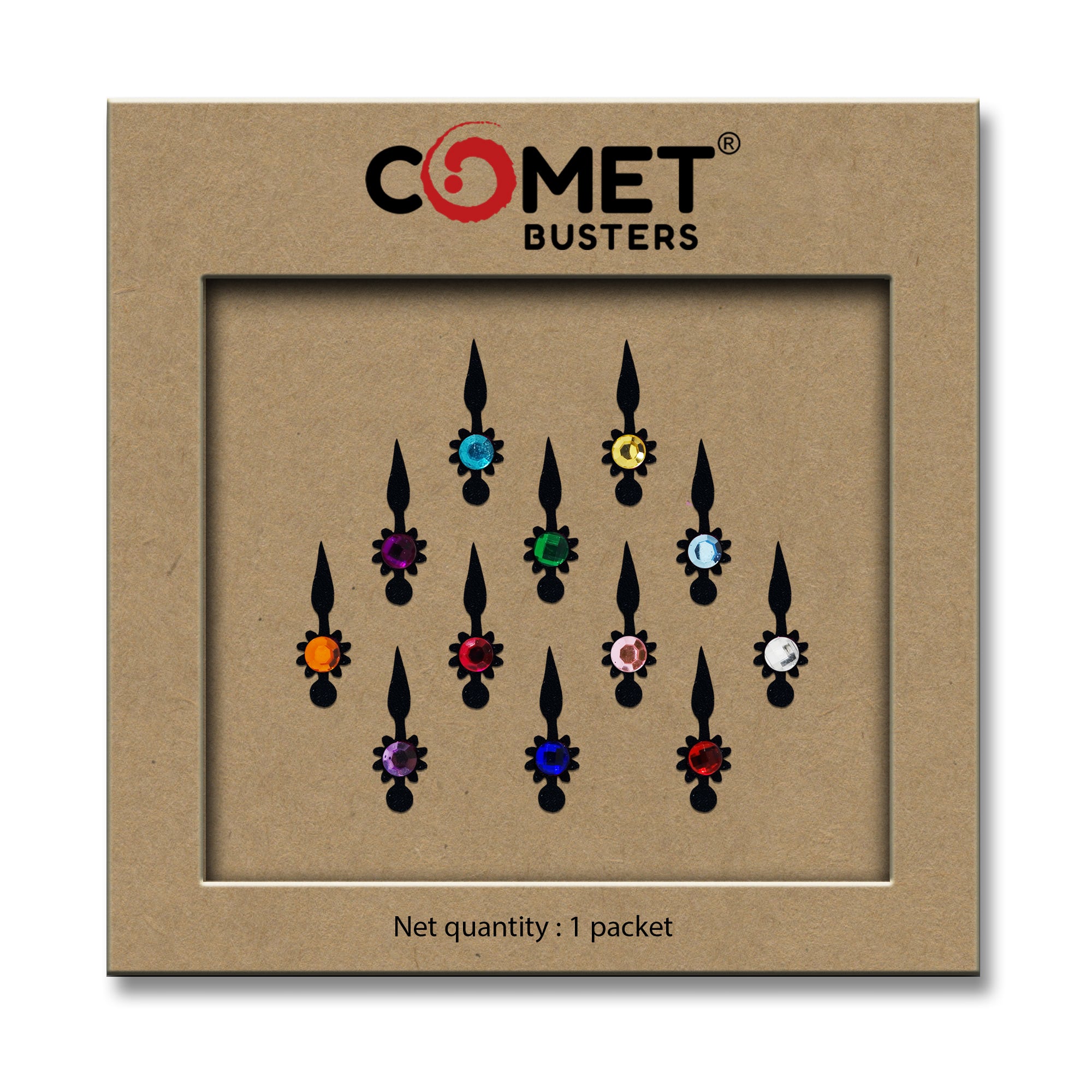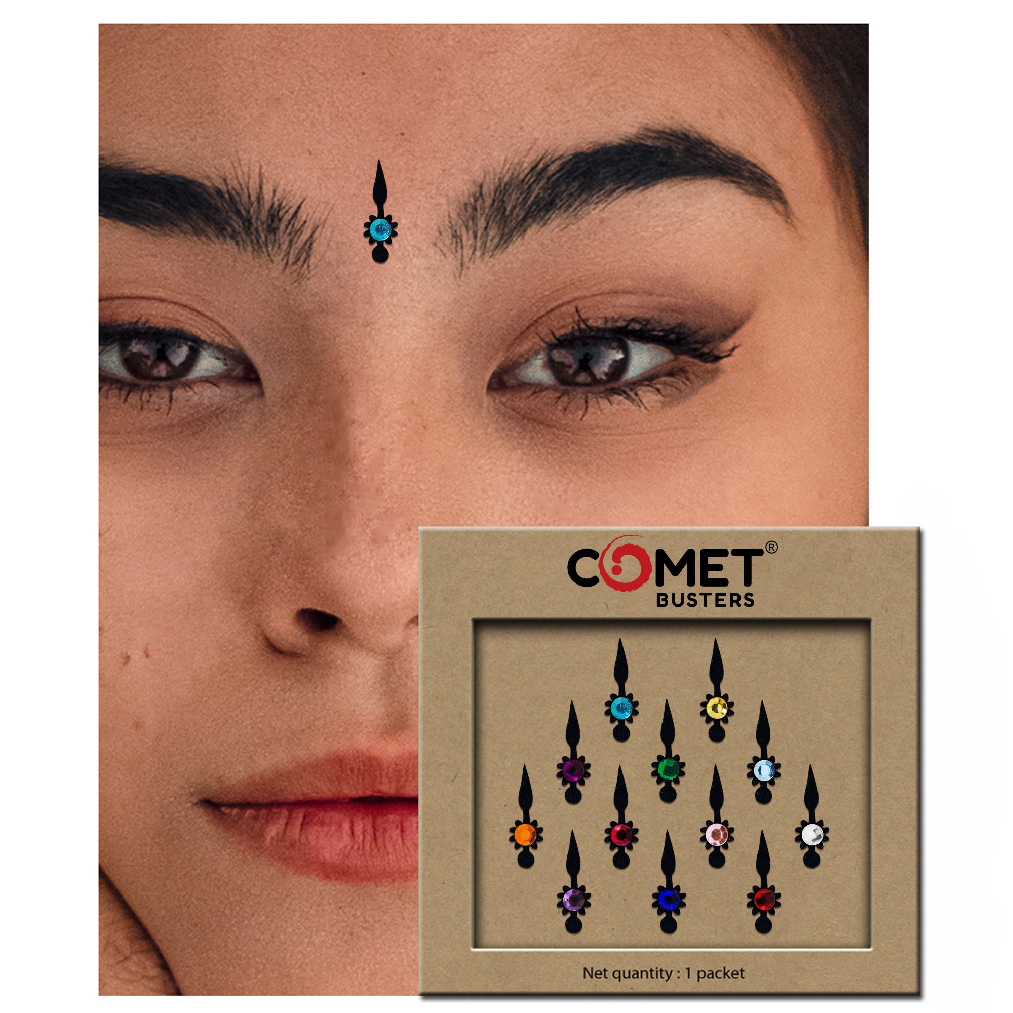Comet Busters® Multicolor, Black Artistic Abstract Bindis – Diamond, PVC – Handcrafted, Reusable & Skin-Friendly Bindis for Partywear Wear (15mm) – Forehead Bindi Stickers for Women & Girls – BIN287