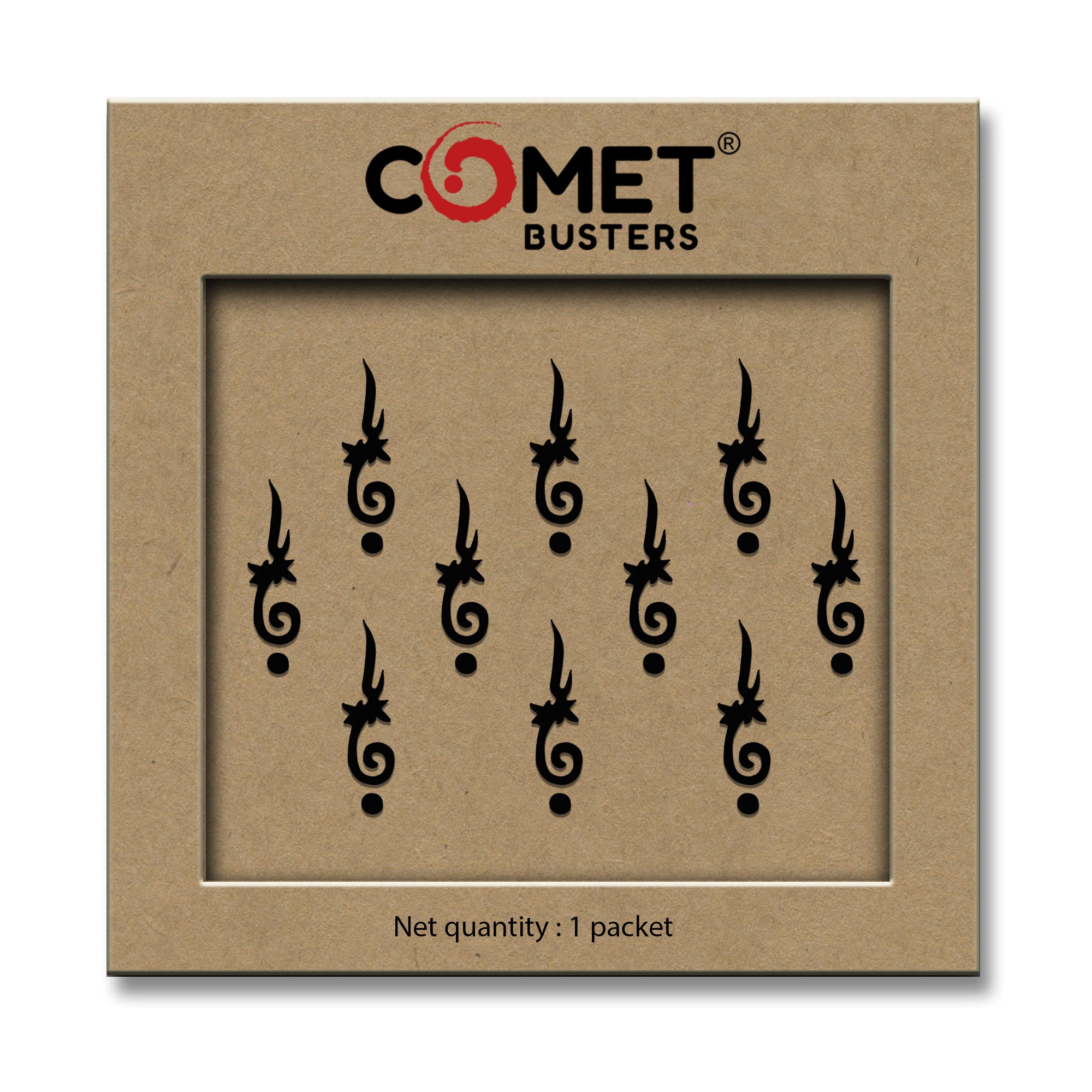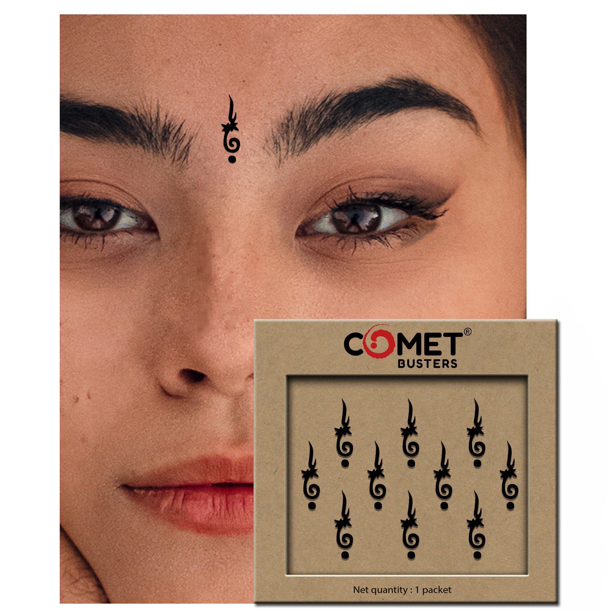 Comet Busters® Black Fusion Abstract Bindis – PVC – Handcrafted, Reusable & Skin-Friendly Bindis for Casual Wear (15mm) – Forehead Bindi Stickers for Women & Girls – BIN144