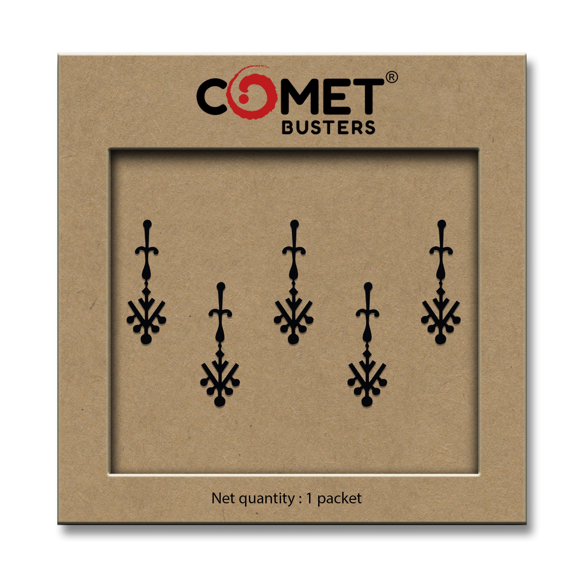 Comet Busters® Black Fusion Abstract Bindis – PVC – Handcrafted, Reusable & Skin-Friendly Bindis for Casual Wear (20mm) – Forehead Bindi Stickers for Women & Girls – BIN162