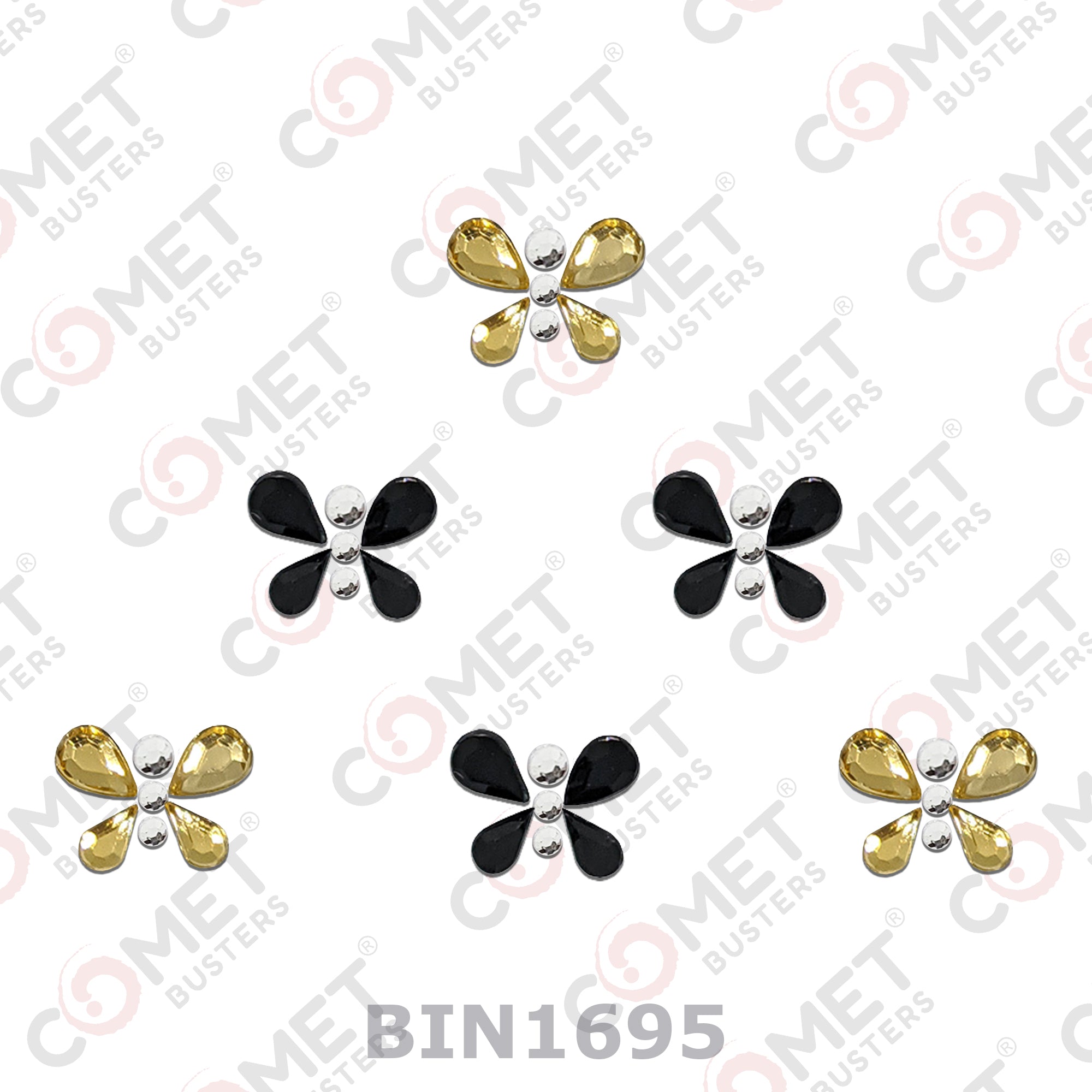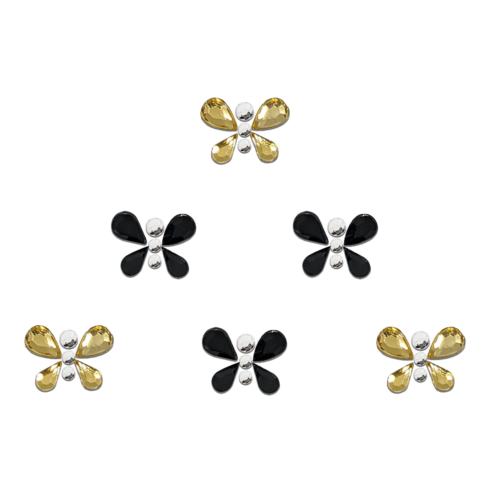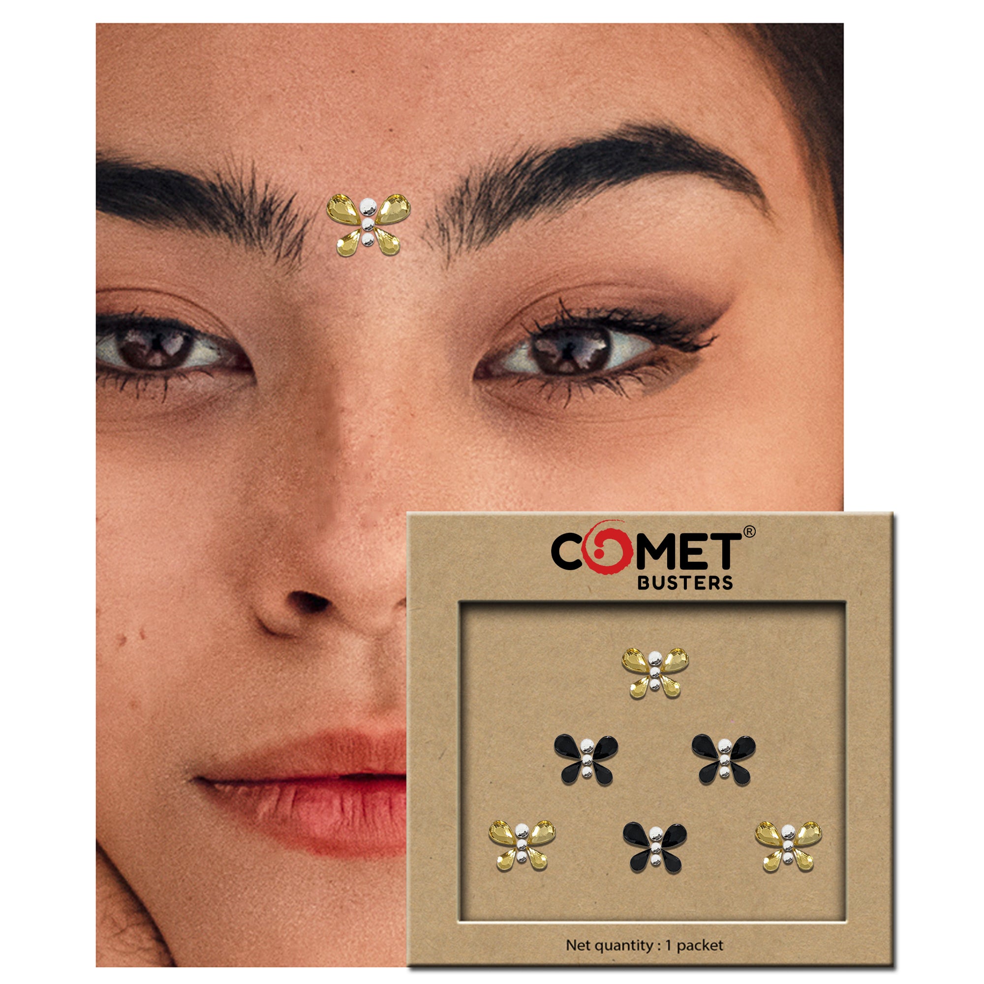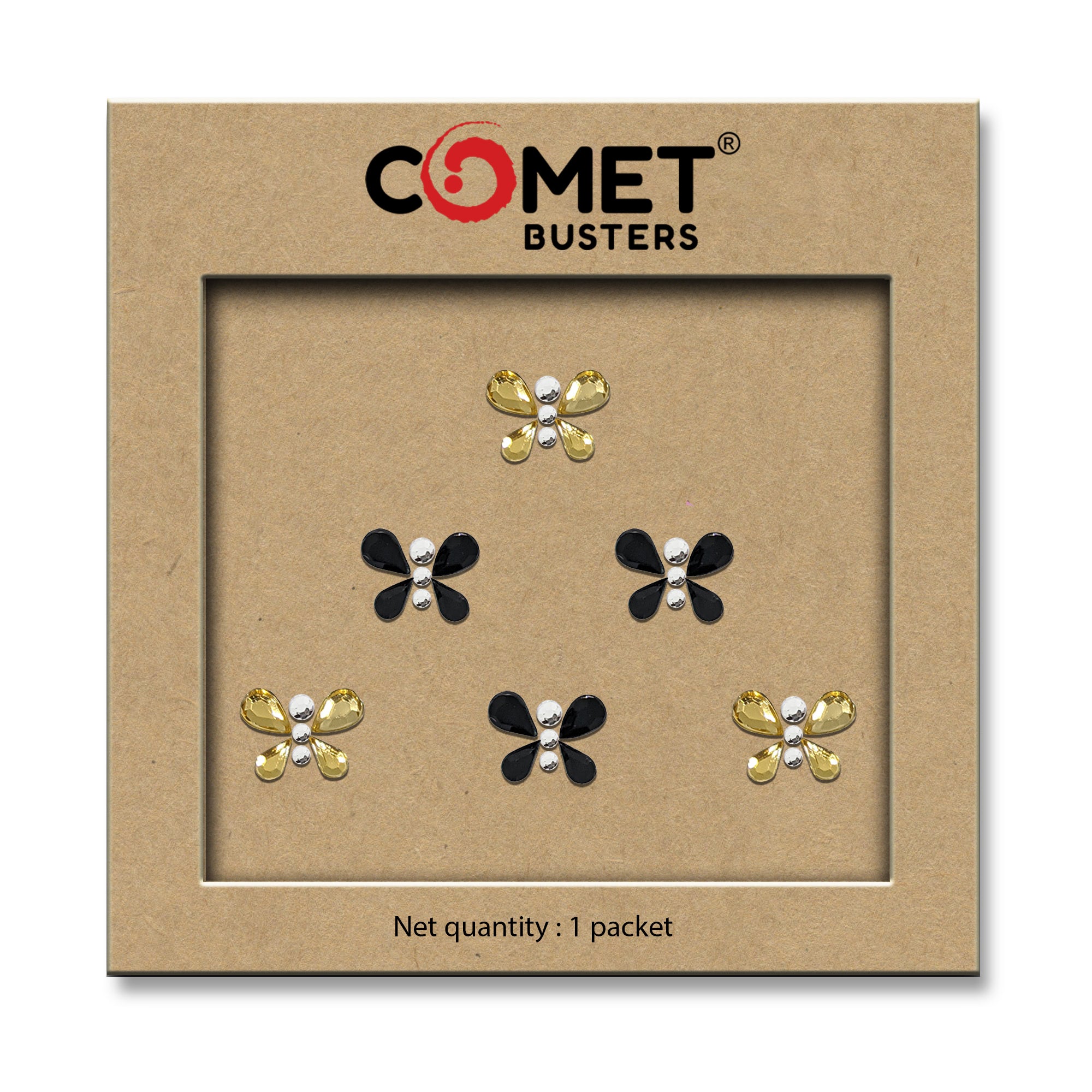 Comet Busters® Gold, Black, Multicolor Butterfly – Crystal, Diamond – Handcrafted, Reusable & Skin-Friendly Bindis for Party Wear (10mm) – Forehead Bindi Stickers for Women & Girls – BIN1695