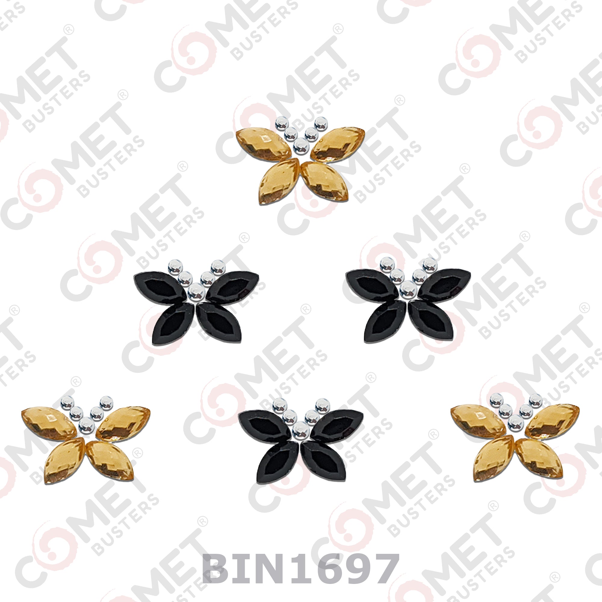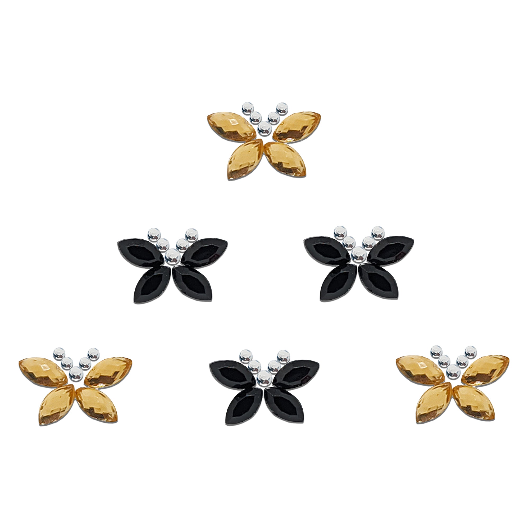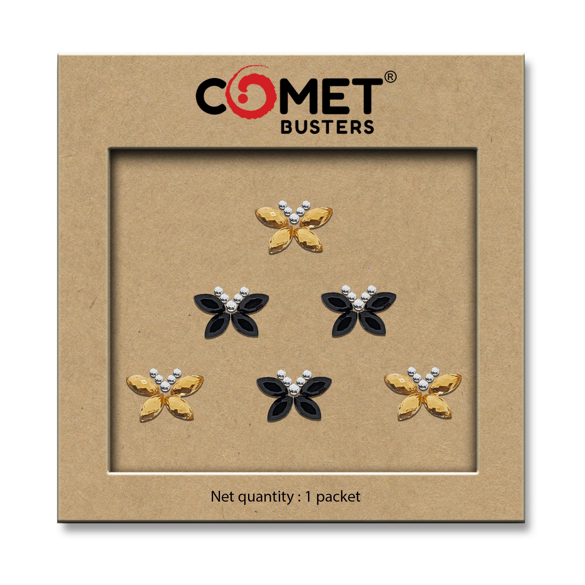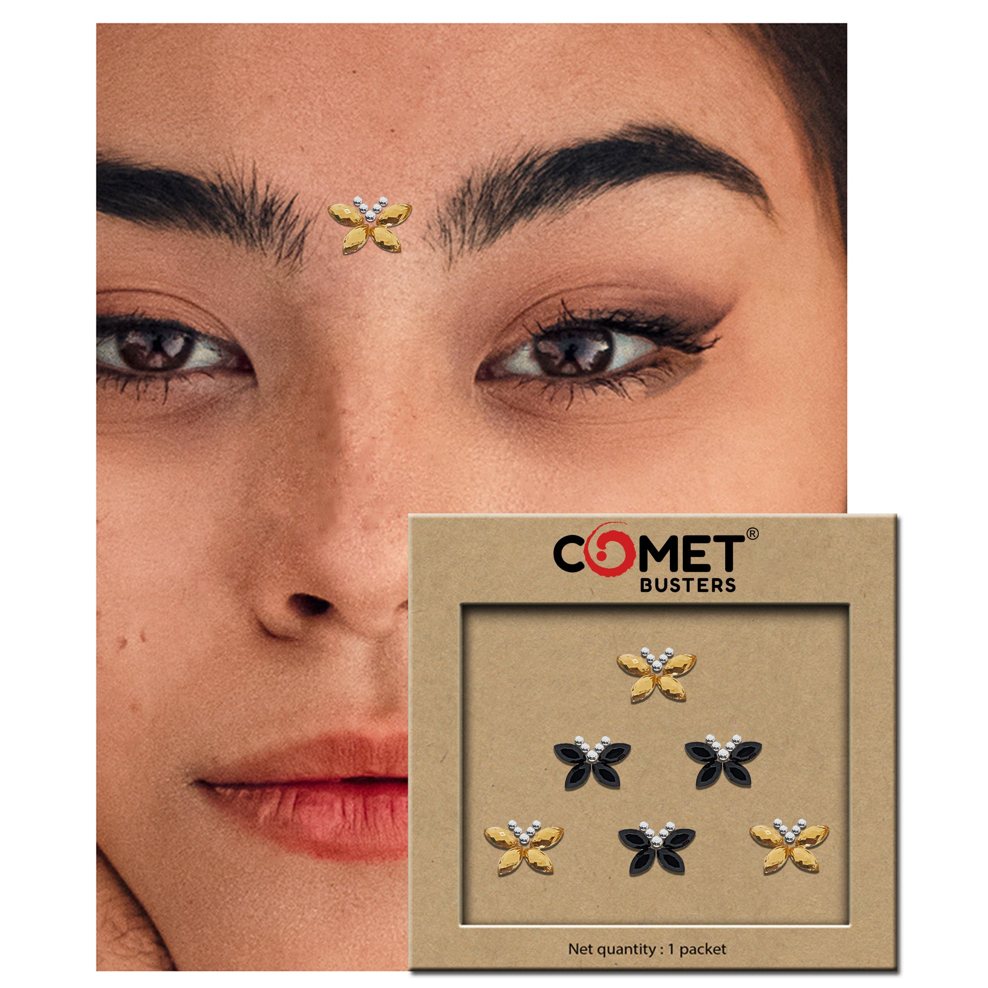 Comet Busters® Gold, Black, Multicolor Butterfly – Crystal, Diamond – Handcrafted, Reusable & Skin-Friendly Bindis for Party Wear (10mm) – Forehead Bindi Stickers for Women & Girls – BIN1697