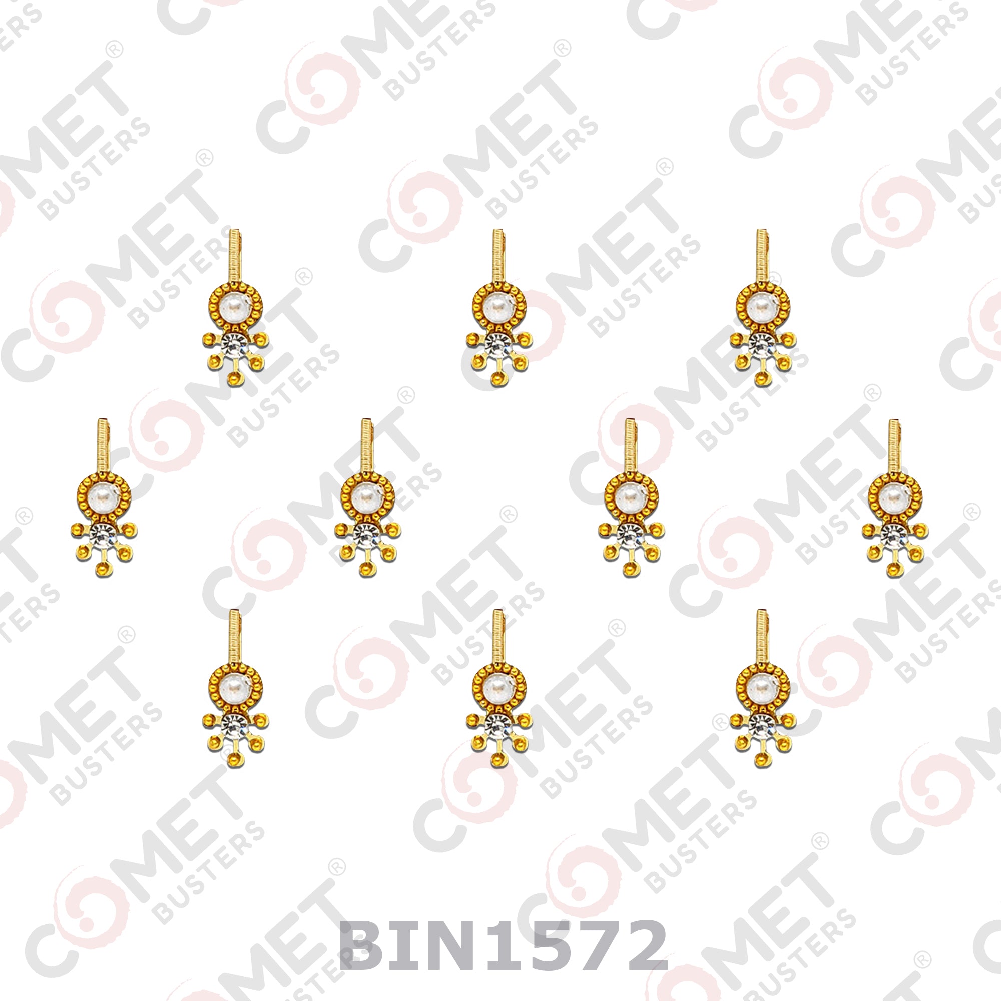 Comet Busters® Gold Artistic Abstract Bindis – PVC, Shiny Beads, Diamond – Handcrafted, Reusable & Skin-Friendly Bindis for Party Wear (15mm) – Forehead Bindi Stickers for Women & Girls – BIN1572