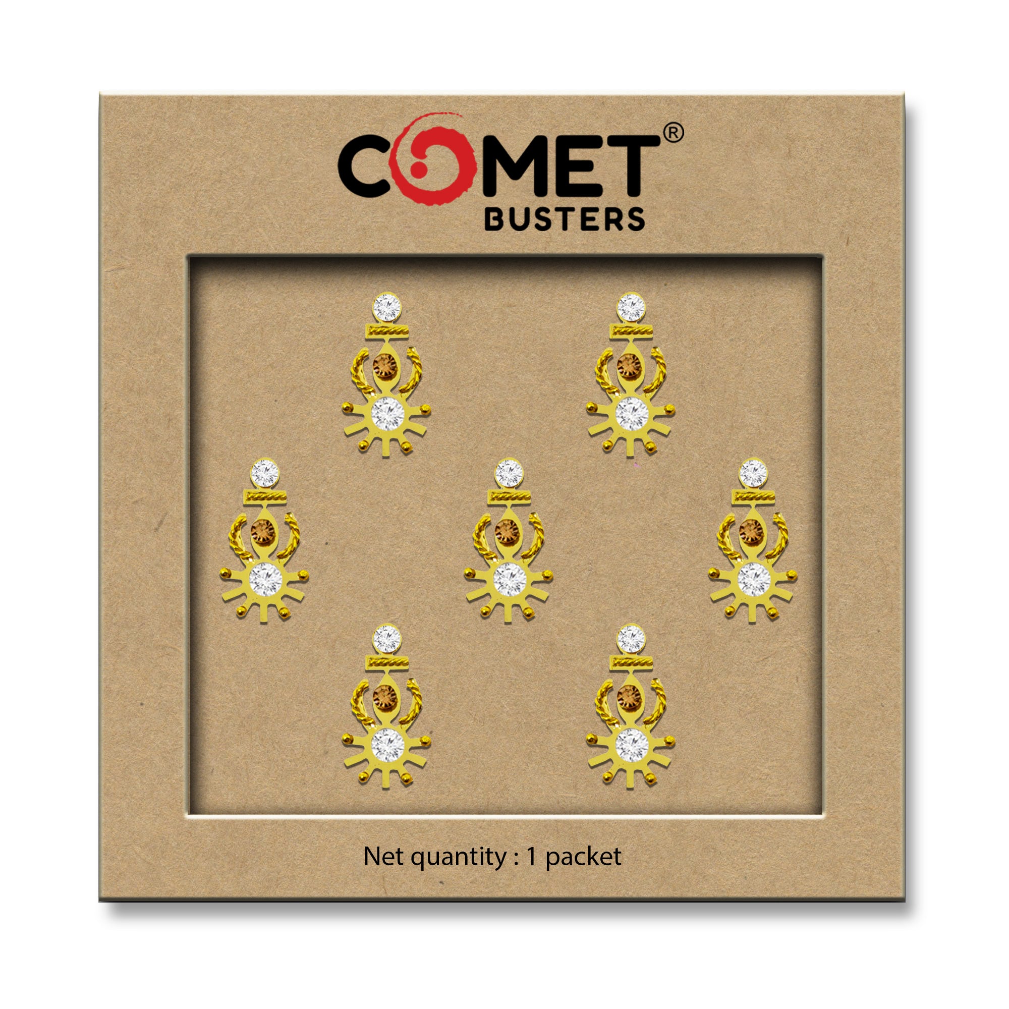 Comet Busters® Gold Artistic Designer Bindis – Handcrafted, Reusable, Skin-Safe Indian Forehead Stickers for Women