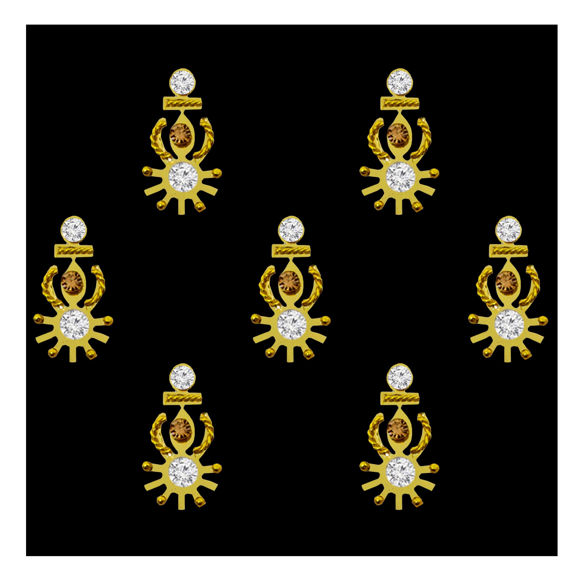 Comet Busters® Gold Artistic Abstract Bindis – Diamond, Shiny Beads – Handcrafted, Reusable & Skin-Friendly Bindis for Party Wear (15mm) – Forehead Bindi Stickers for Women & Girls – BIN1372