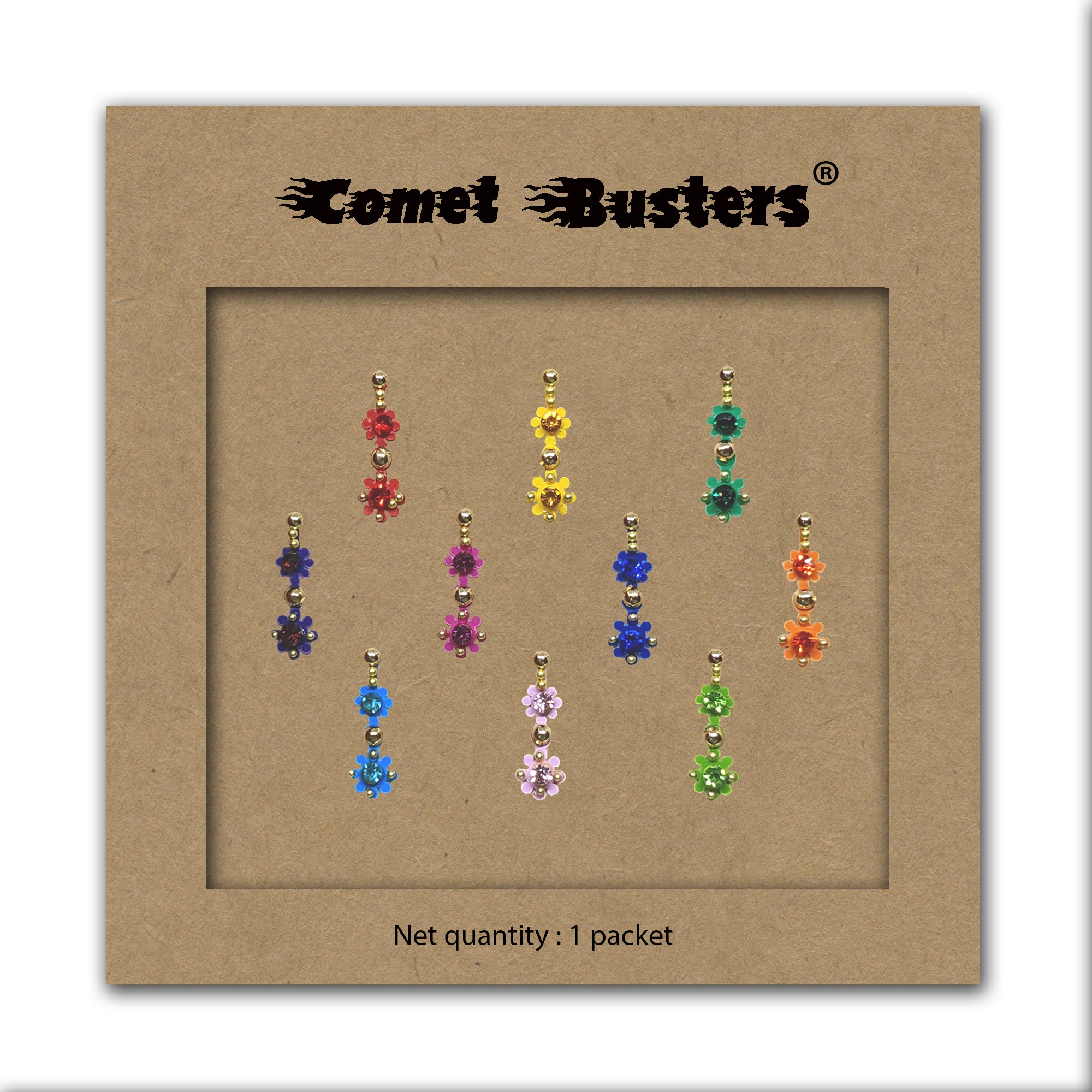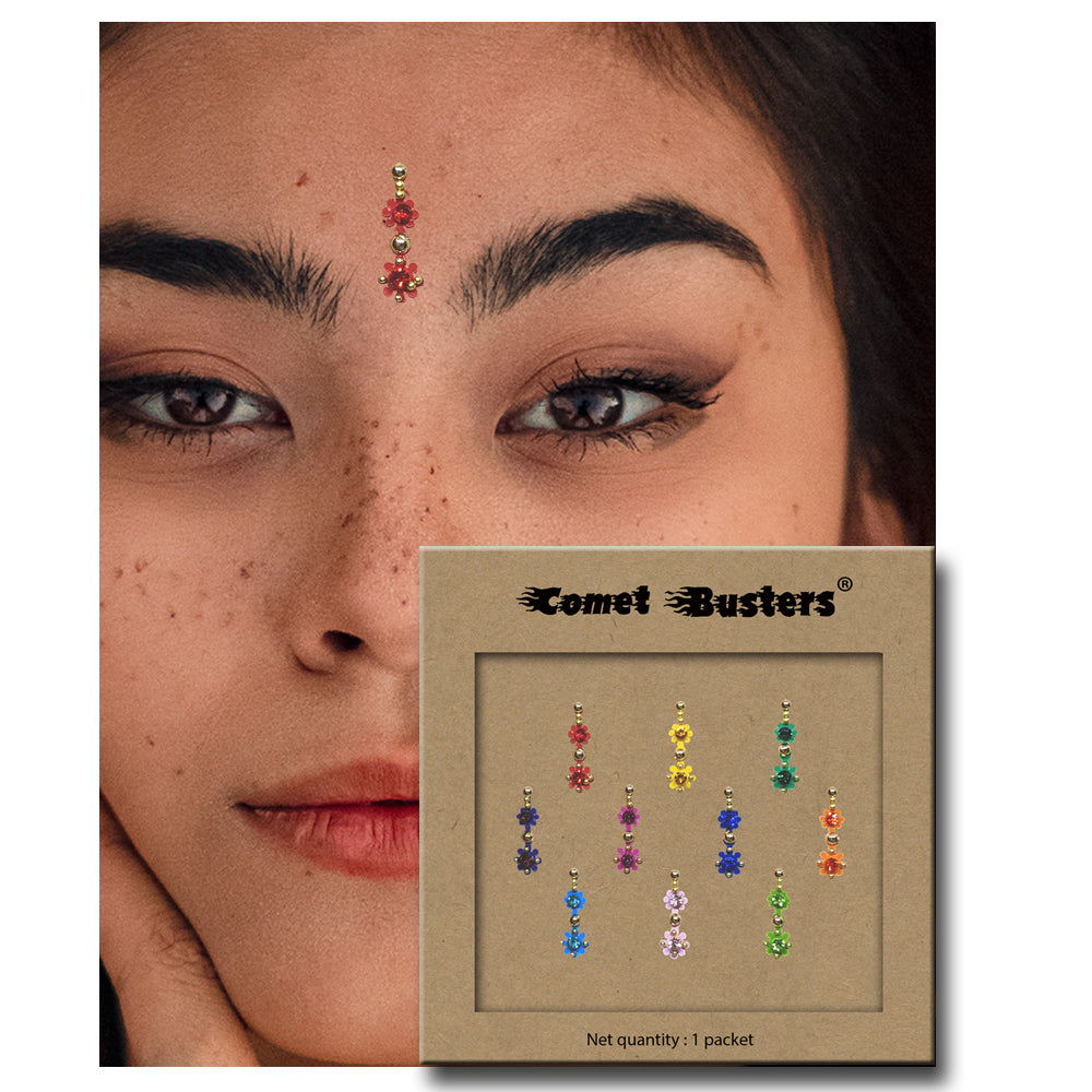 Comet Busters® Multicolor Artistic Abstract Bindis – PVC, Diamond, Shiny Beads – Handcrafted, Reusable & Skin-Friendly Bindis for Party Wear (15mm) – Forehead Bindi Stickers for Women & Girls – BIN1931
