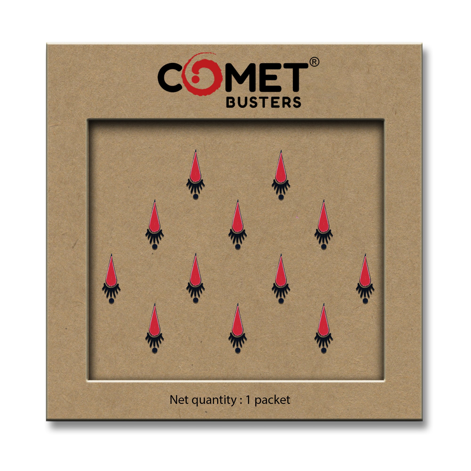 Comet Busters® Red, Black, Multicolor Tear Drop – PVC – Handcrafted, Reusable & Skin-Friendly Bindis for Casual Wear (10mm) – Forehead Bindi Stickers for Women & Girls – BIN2440