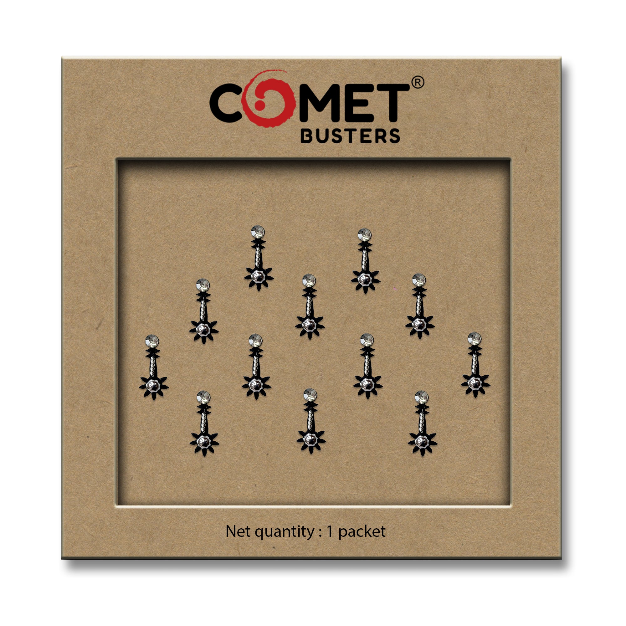 Comet Busters® Silver, Black, Multicolor Artistic Abstract Bindis – PVC, Diamond, Shiny Beads – Handcrafted, Reusable & Skin-Friendly Bindis for Party Wear (10mm) – Forehead Bindi Stickers for Women & Girls – BIN1818