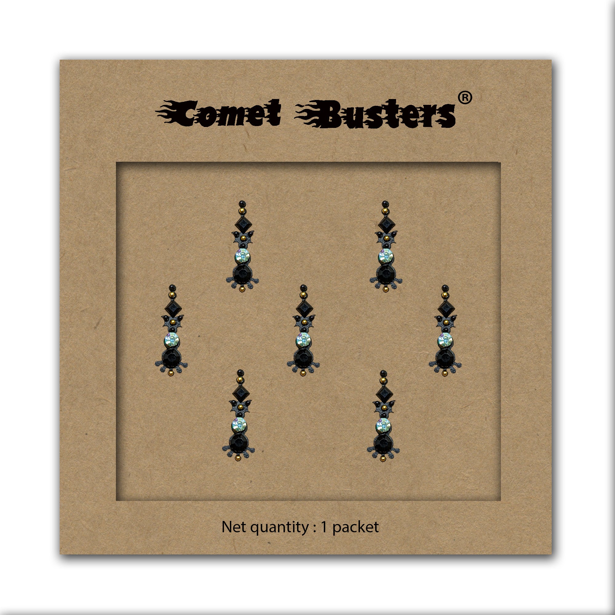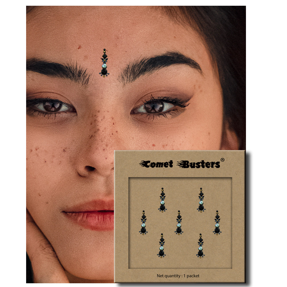 Comet Busters® Black Artistic Abstract Bindis – PVC, Diamond, Shiny Beads – Handcrafted, Reusable & Skin-Friendly Bindis for Party Wear (15mm) – Forehead Bindi Stickers for Women & Girls – BIN1915