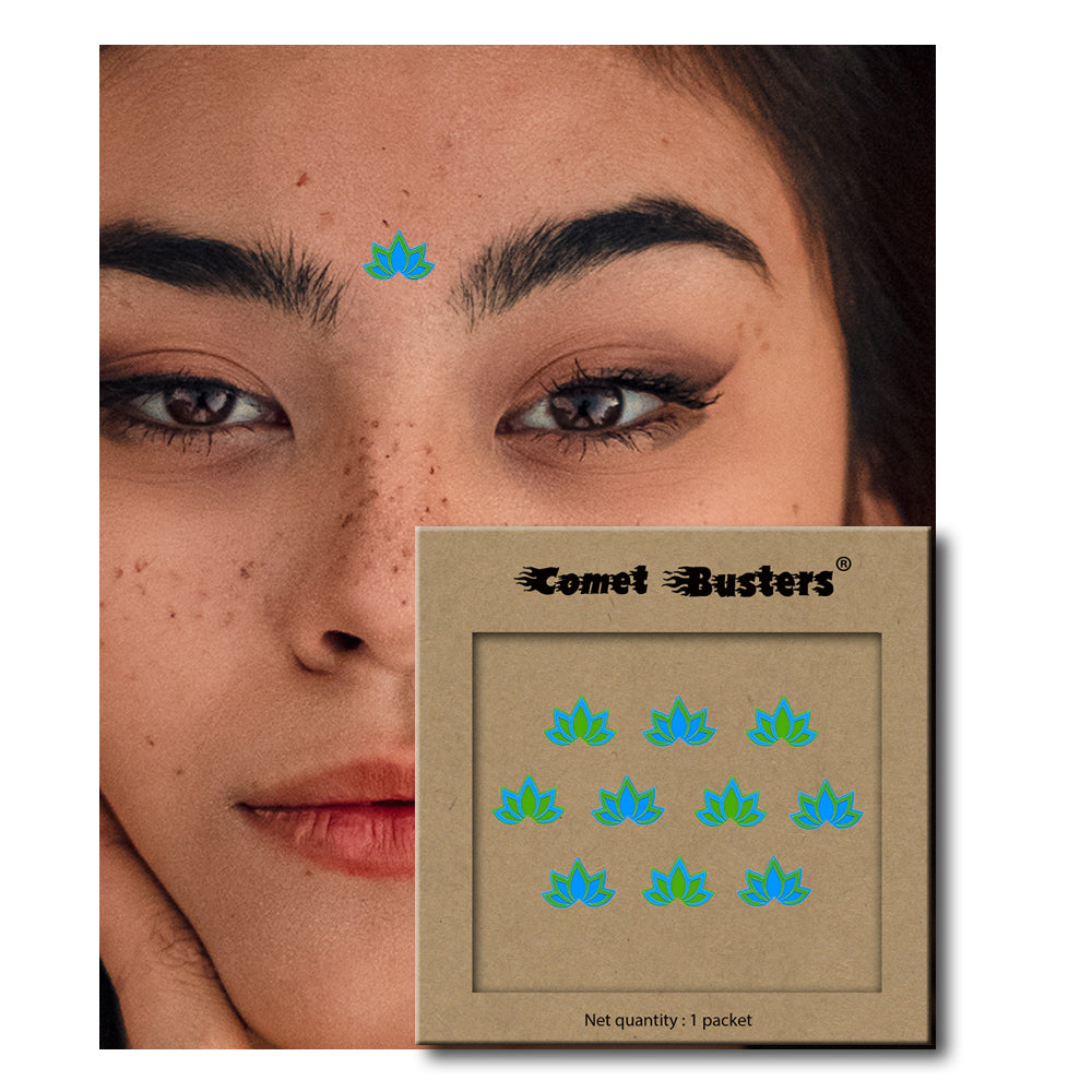 Comet Busters® Green, Blue, Multicolor Floral, Lotus – PVC – Handcrafted, Reusable & Skin-Friendly Bindis for Casual Wear (10mm) – Forehead Bindi Stickers for Women & Girls – BIN1951