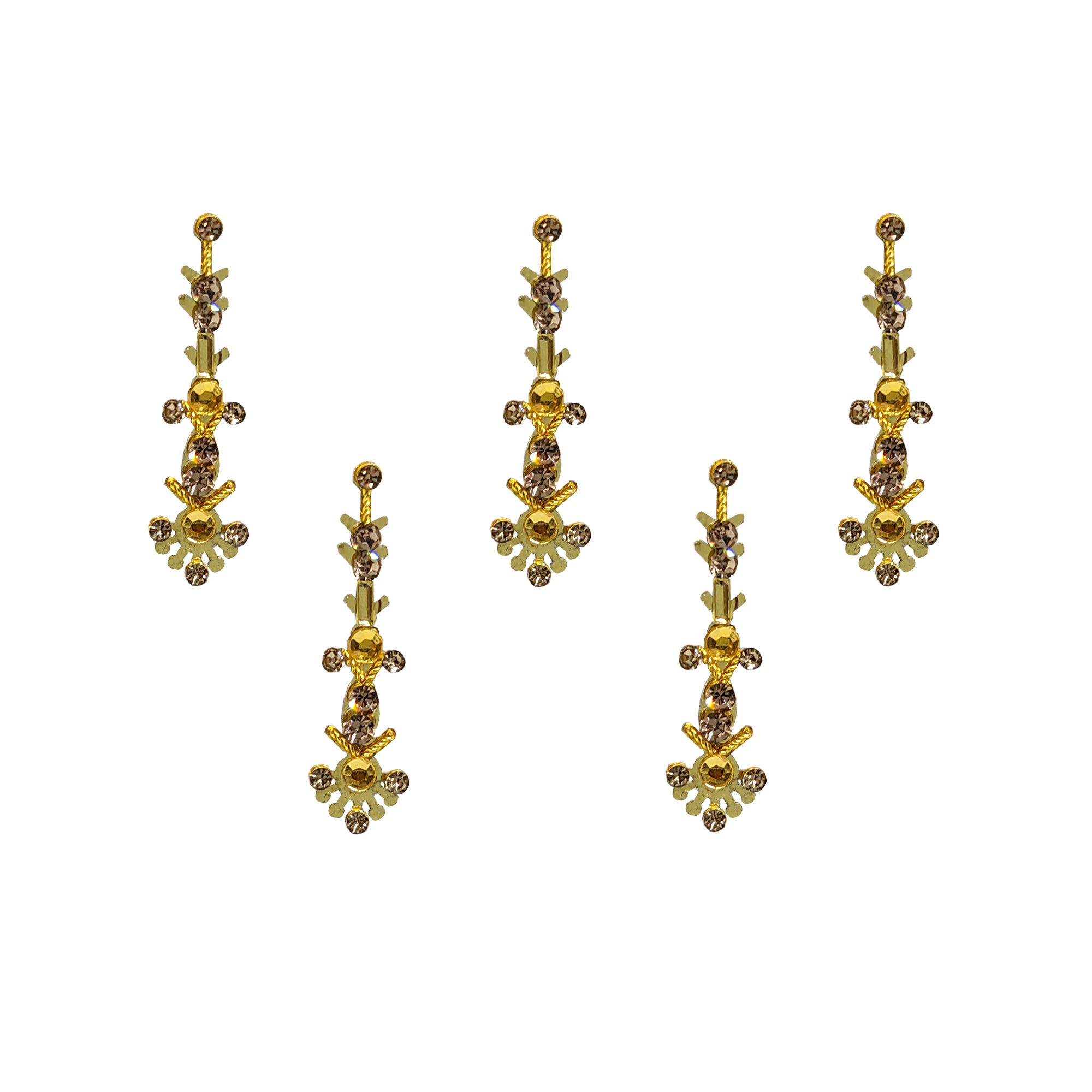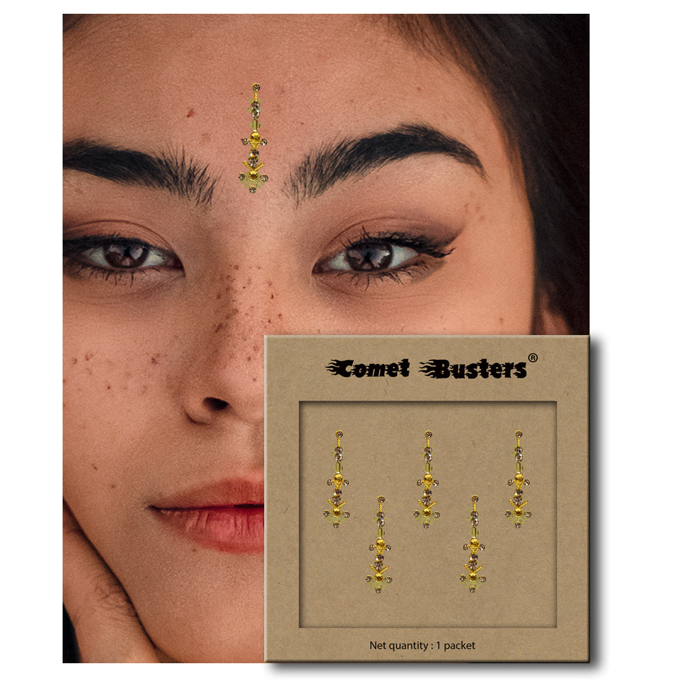 Comet Busters® Gold Artistic Abstract Bindis – PVC, Diamond, Shiny Beads – Handcrafted, Reusable & Skin-Friendly Bindis for Party Wear (25mm) – Forehead Bindi Stickers for Women & Girls – BIN1905
