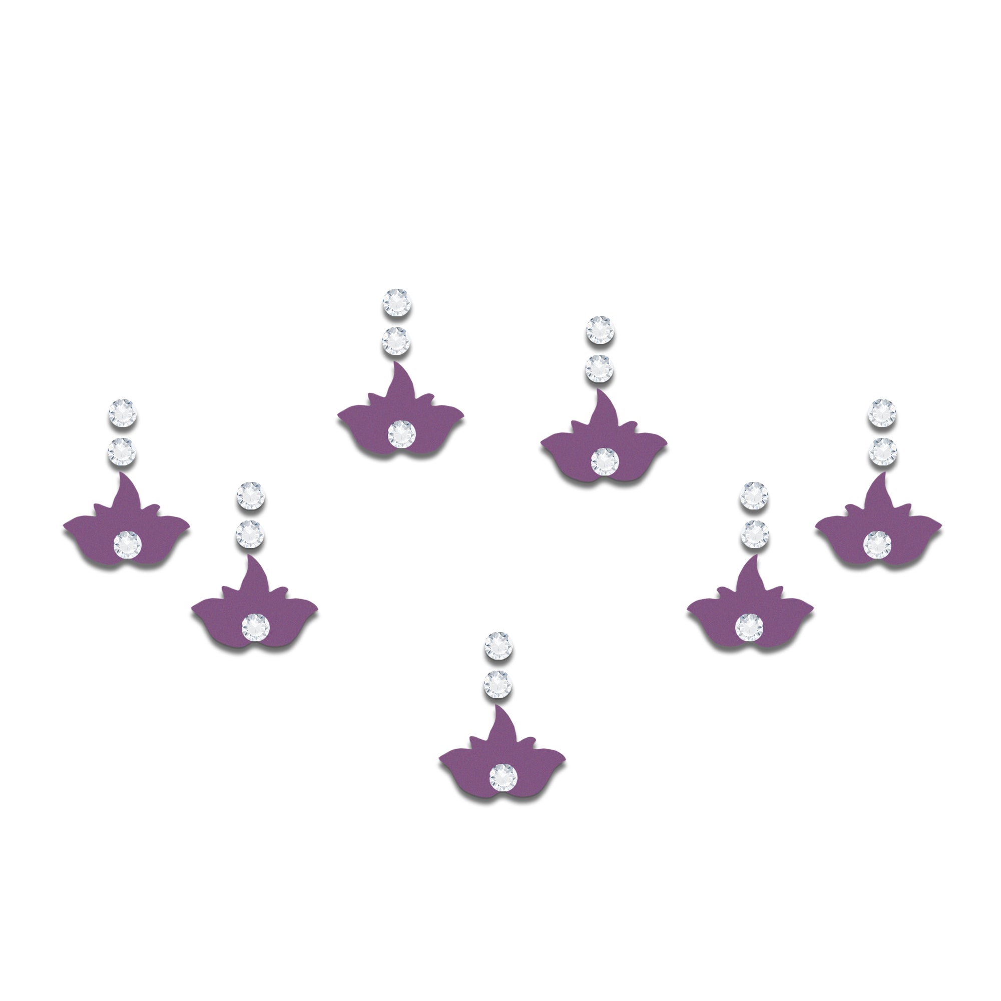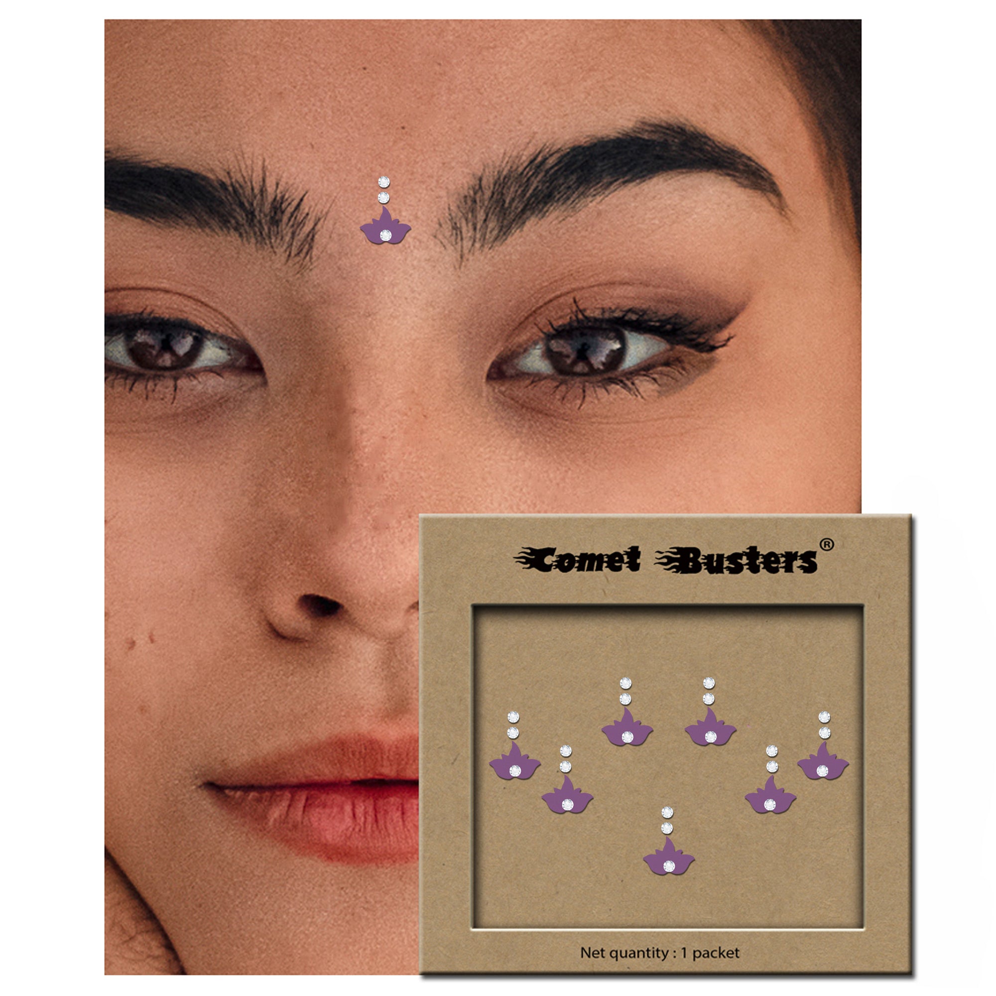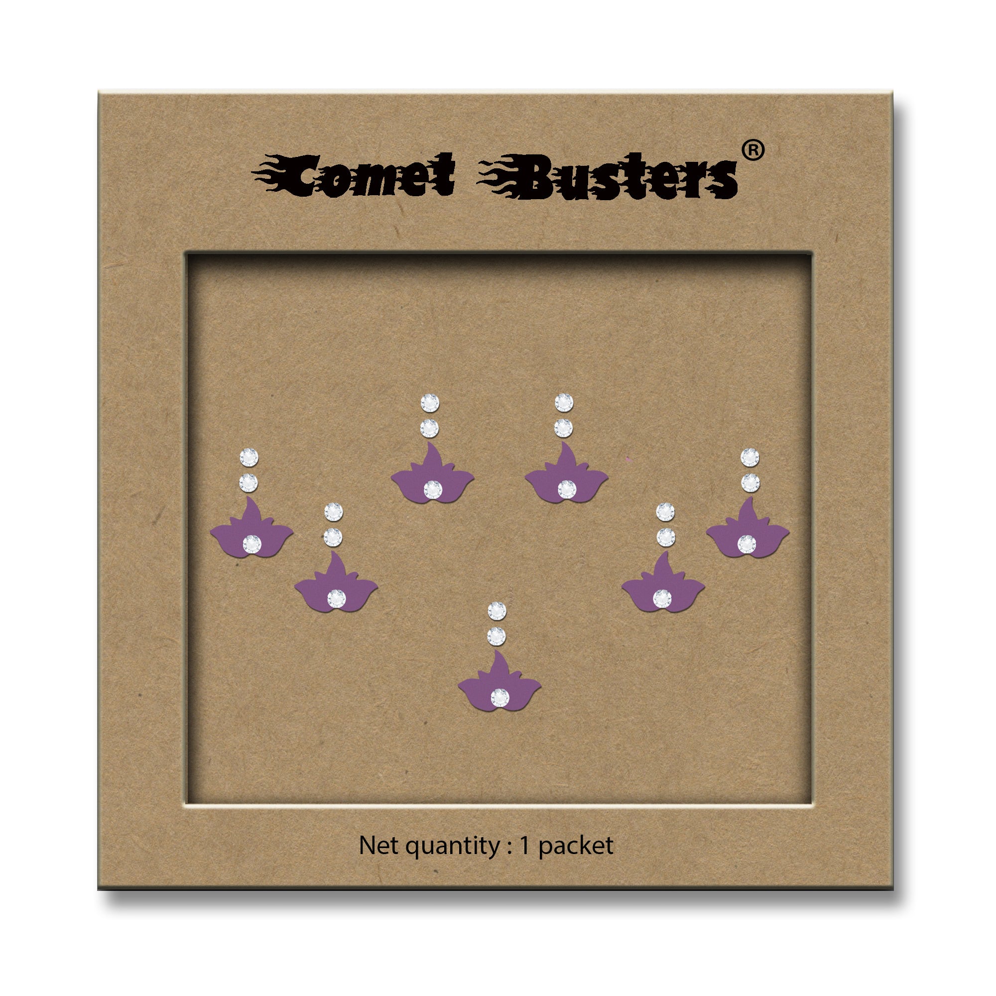 Comet Busters® Purple Floral, Lotus – Velvet, Diamond – Handcrafted, Reusable & Skin-Friendly Bindis for Party Wear (6mm) – Forehead Bindi Stickers for Women & Girls – BIN2269