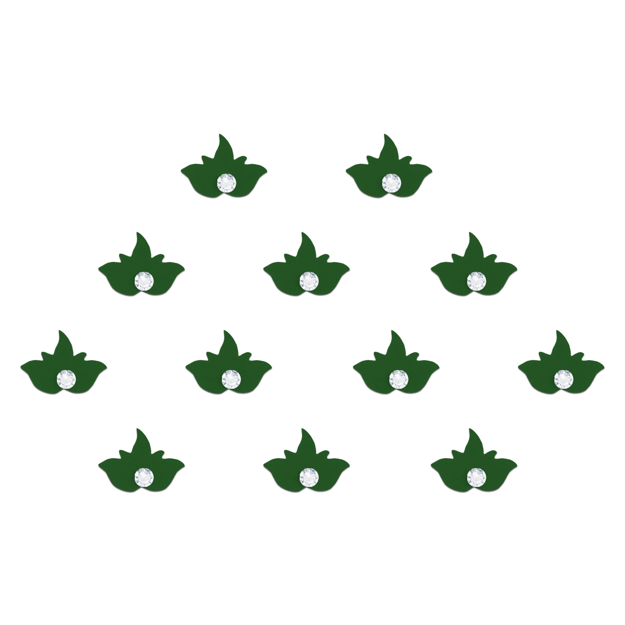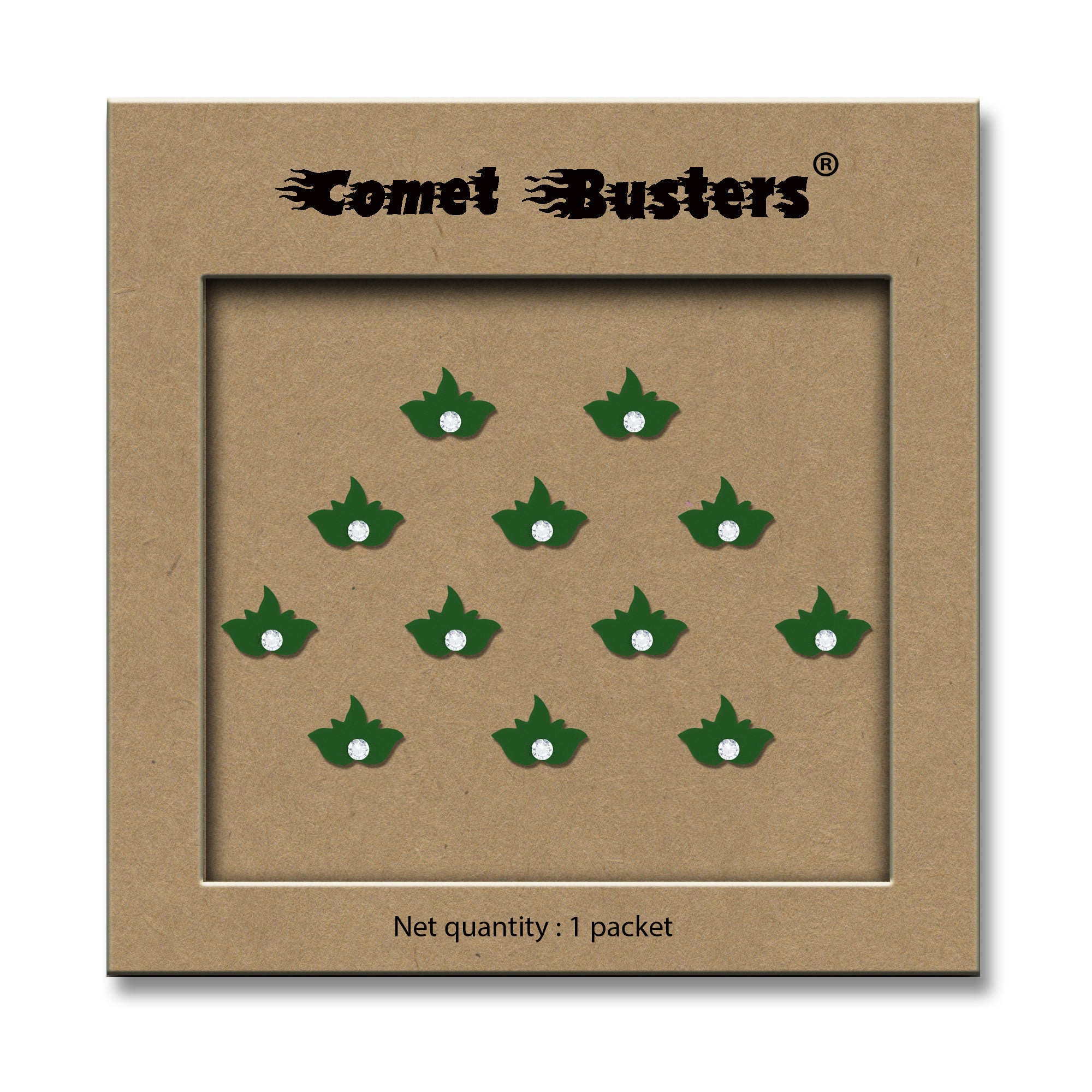 Comet Busters® Green Floral, Lotus – Velvet, Diamond – Handcrafted, Reusable & Skin-Friendly Bindis for Party Wear (6mm) – Forehead Bindi Stickers for Women & Girls – BIN2260