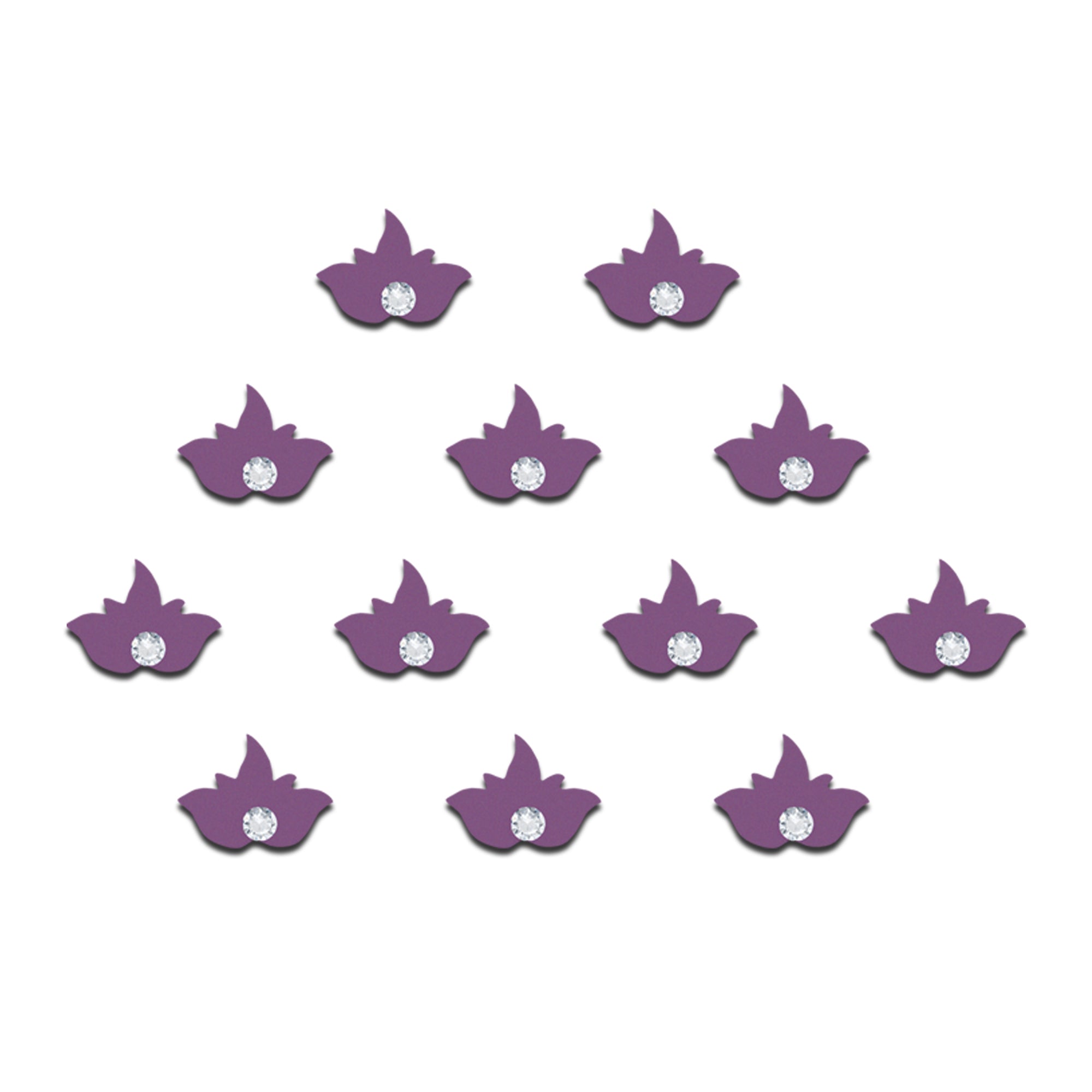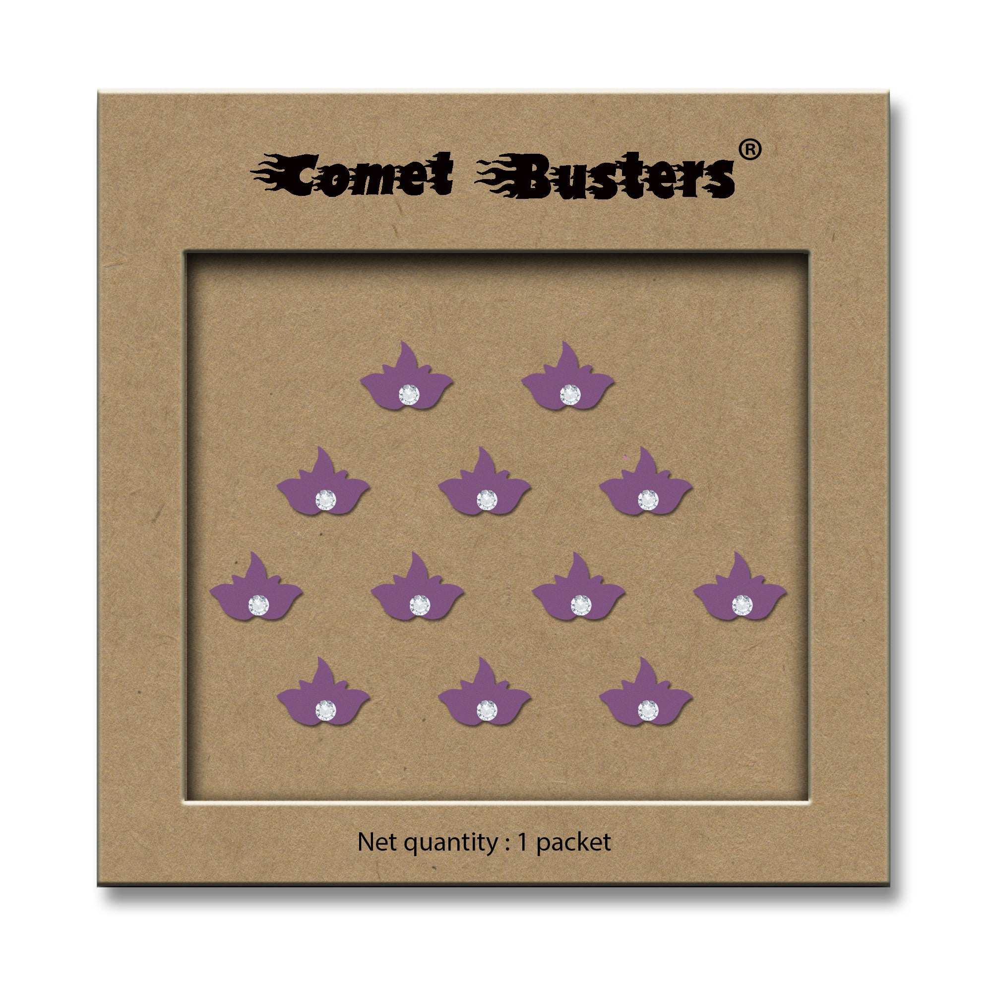 Comet Busters® Purple Floral, Lotus – Velvet, Diamond – Handcrafted, Reusable & Skin-Friendly Bindis for Party Wear (6mm) – Forehead Bindi Stickers for Women & Girls – BIN2255