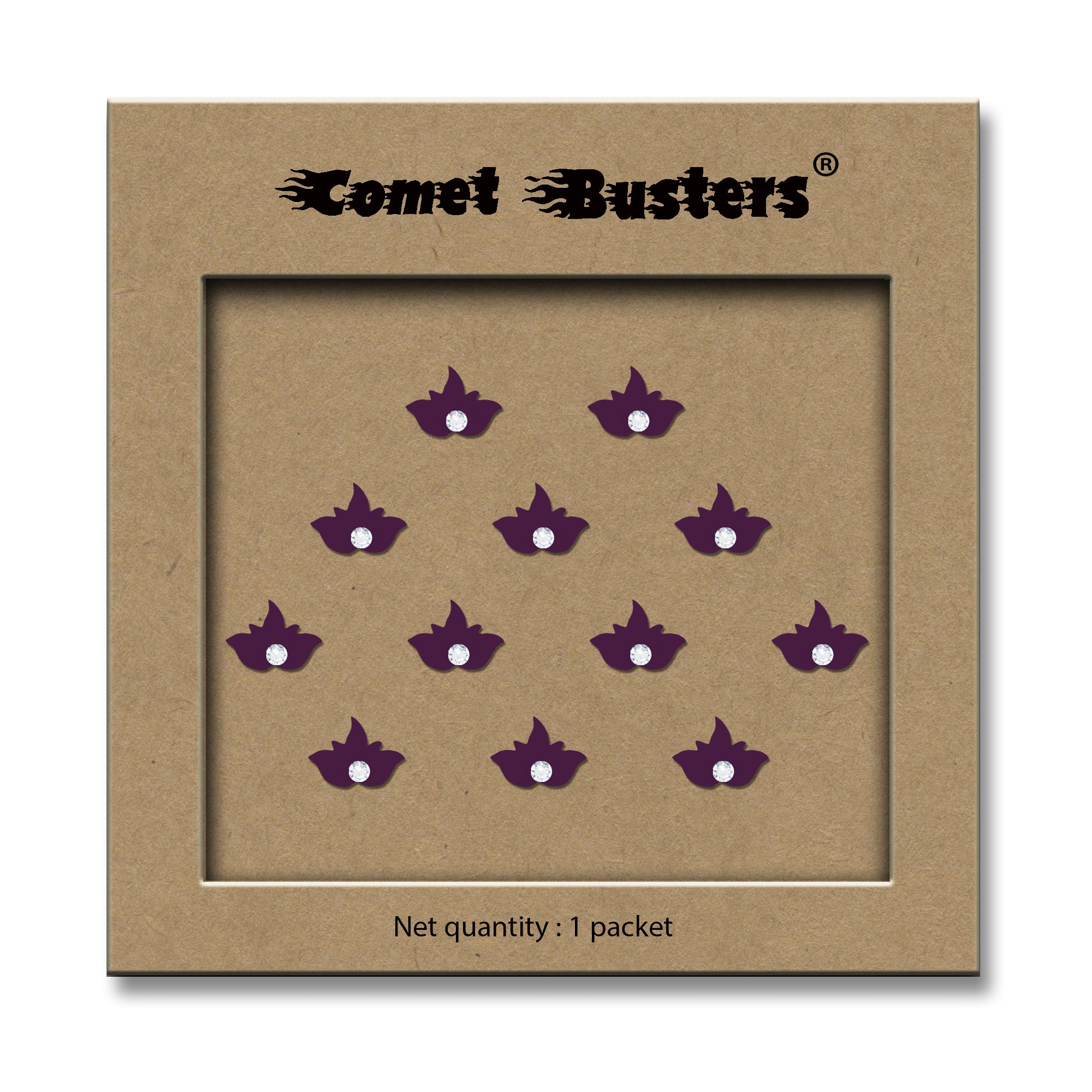 Comet Busters® Purple Floral, Lotus – Velvet, Diamond – Handcrafted, Reusable & Skin-Friendly Bindis for Party Wear (6mm) – Forehead Bindi Stickers for Women & Girls – BIN2257
