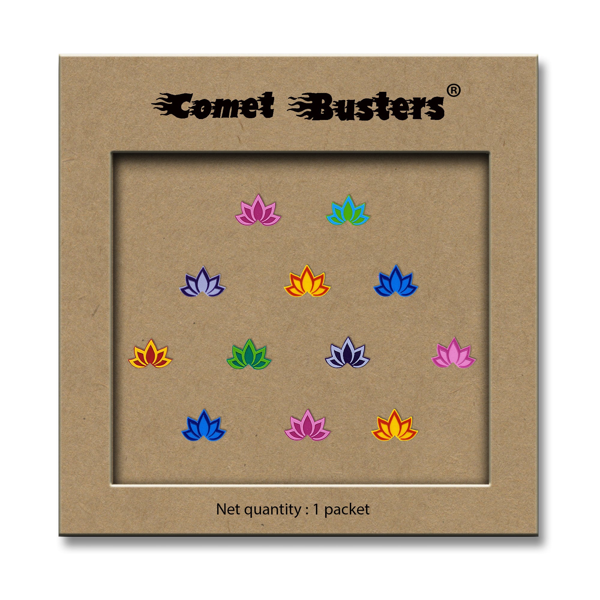 Comet Busters® Multicolor Floral, Lotus – PVC – Handcrafted, Reusable & Skin-Friendly Bindis for Casual Wear (4mm) – Forehead Bindi Stickers for Women & Girls – BIN2249