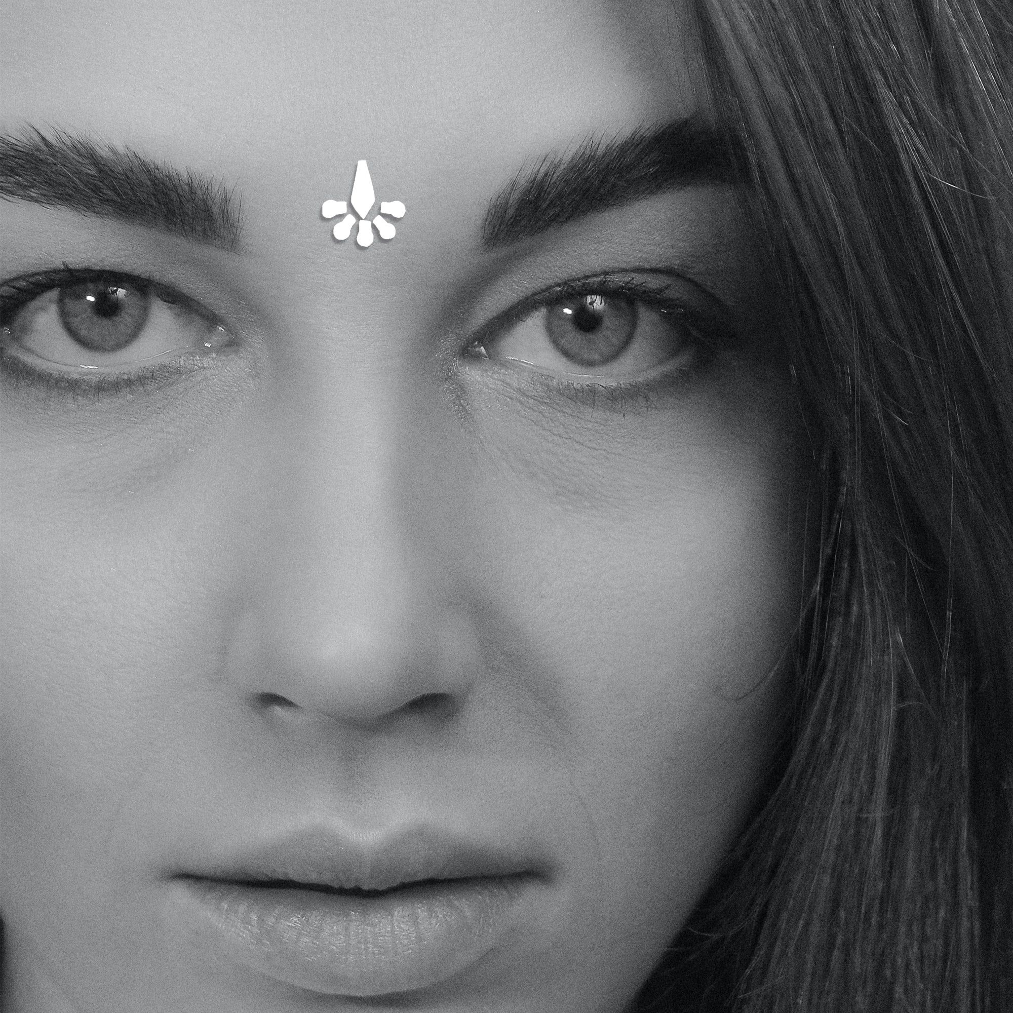• To apply, gently remove the bindi from its backing and place it between the eyebrows.