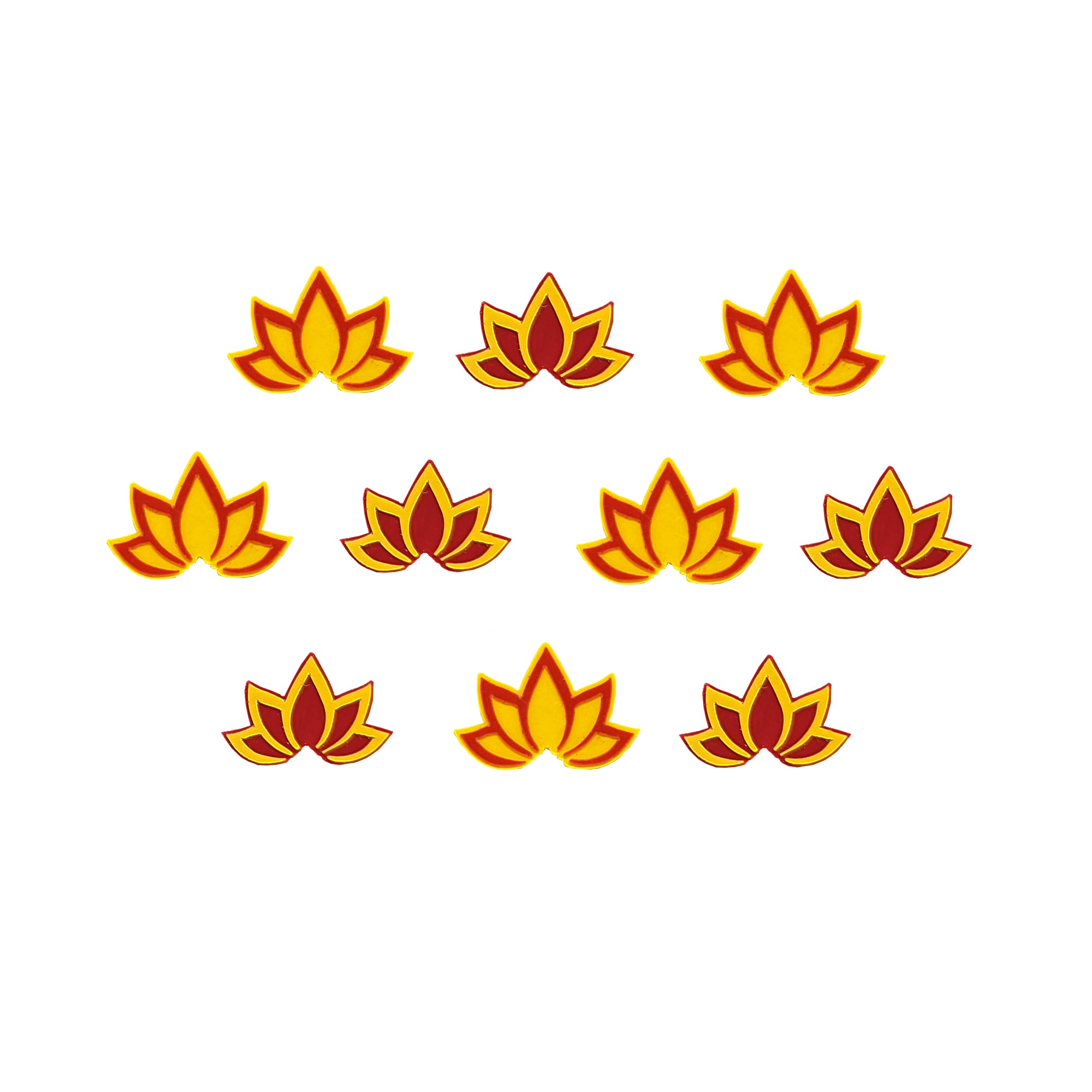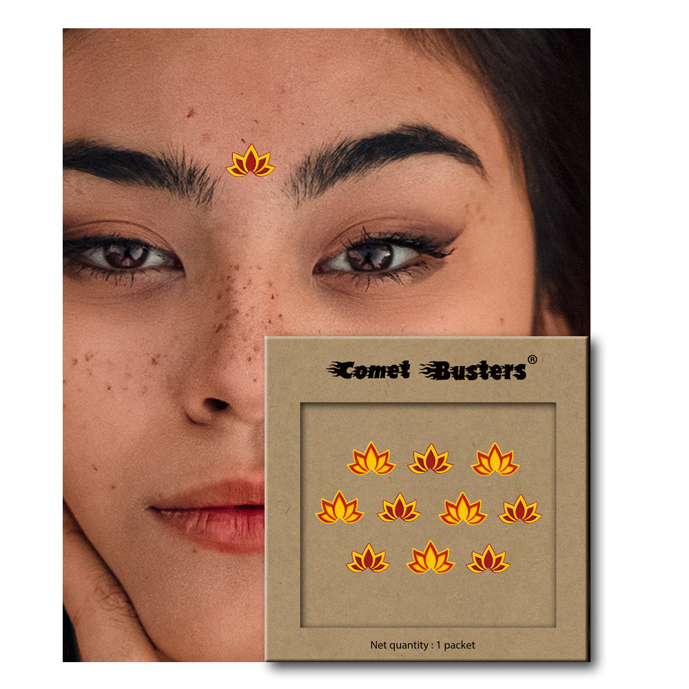 Comet Busters® Yellow, Red, Multicolor Floral, Lotus – PVC – Handcrafted, Reusable & Skin-Friendly Bindis for Casual Wear (10mm) – Forehead Bindi Stickers for Women & Girls – BIN1944