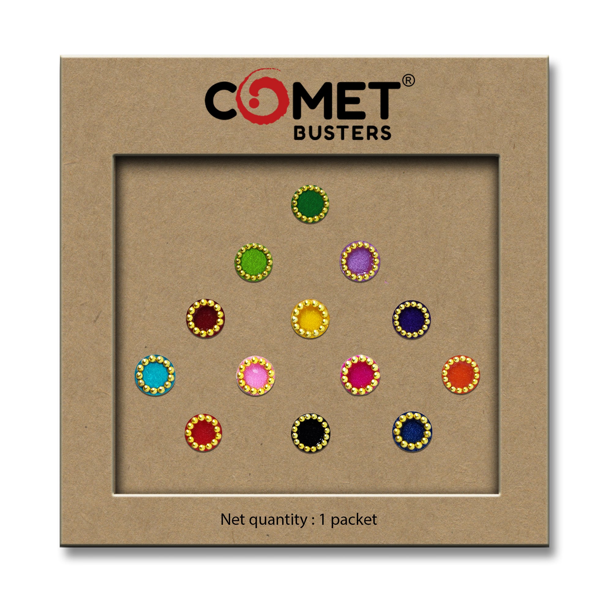 Comet Busters® Multicolor Fusion Abstract Bindis – PVC – Handcrafted, Reusable & Skin-Friendly Bindis for Casual Wear (5mm) – Forehead Bindi Stickers for Women & Girls – BIN265