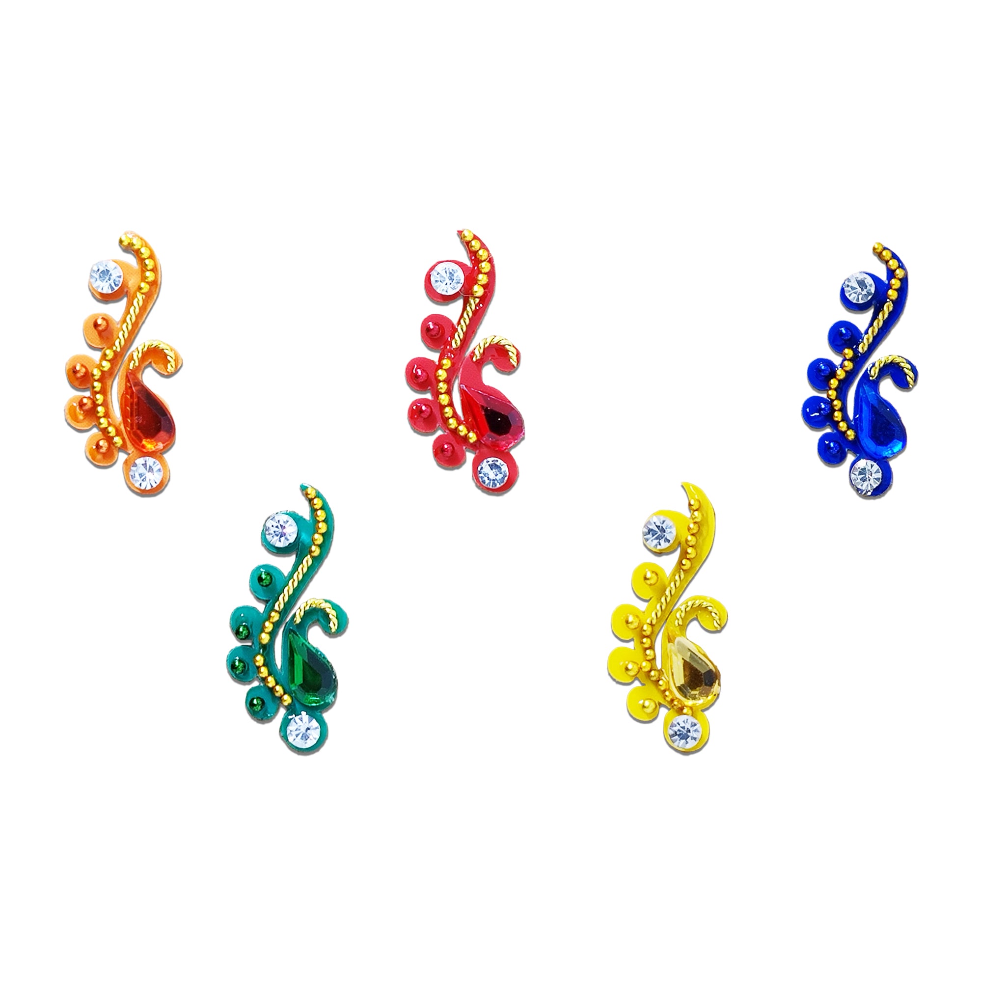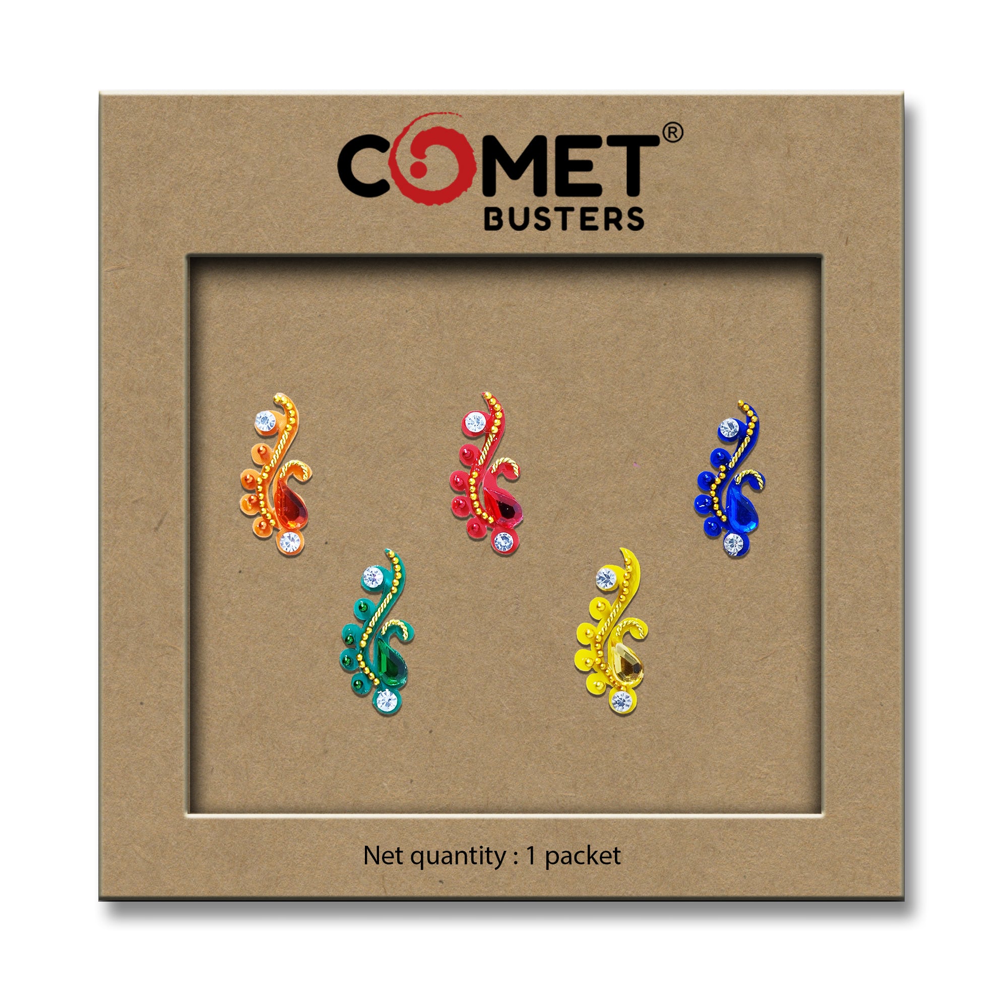 Comet Busters® Multicolor Peacock – Diamond, Shiny Beads, PVC – Handcrafted, Reusable & Skin-Friendly Bindis for Bridal Wear (18mm) – Forehead Bindi Stickers for Women & Girls – BIN827