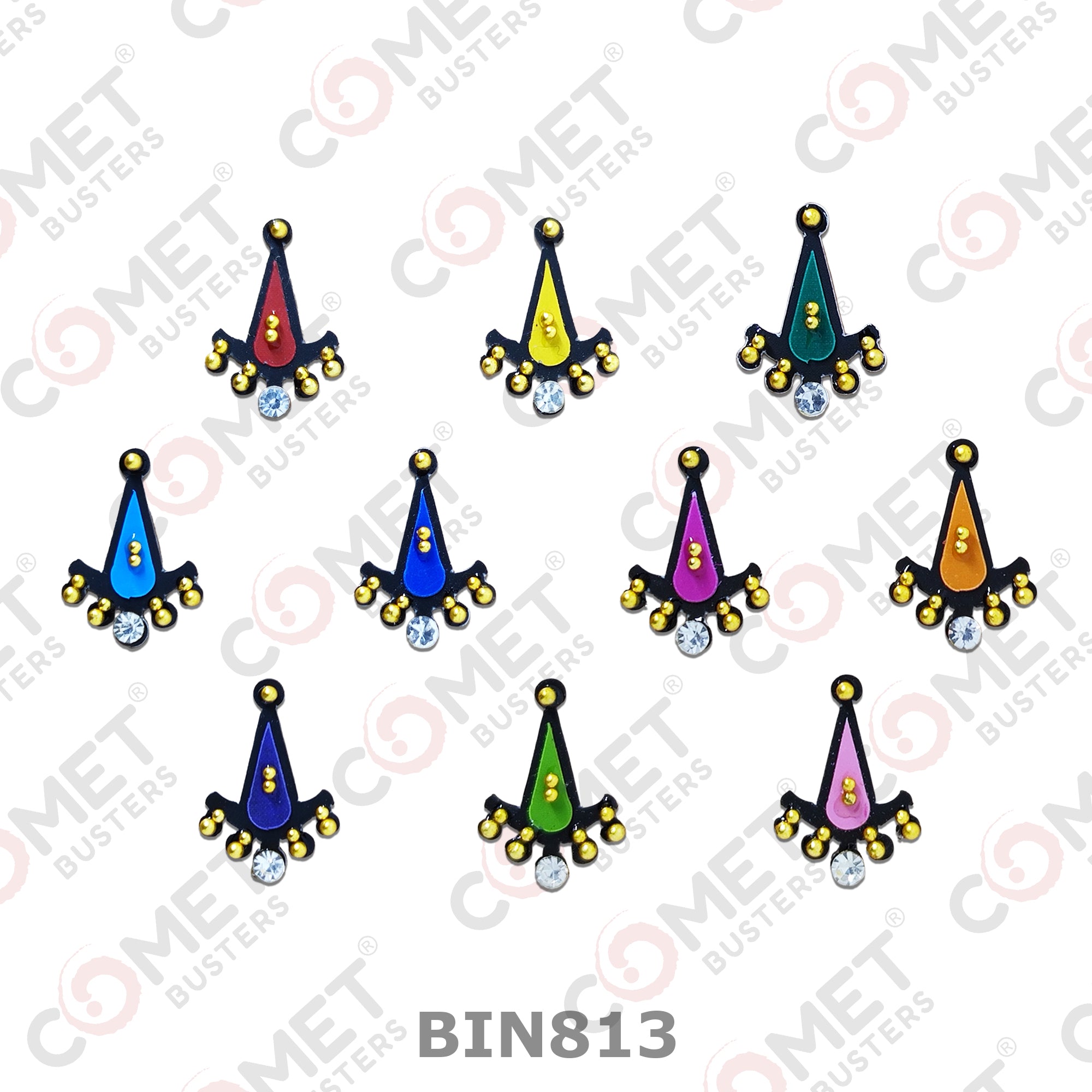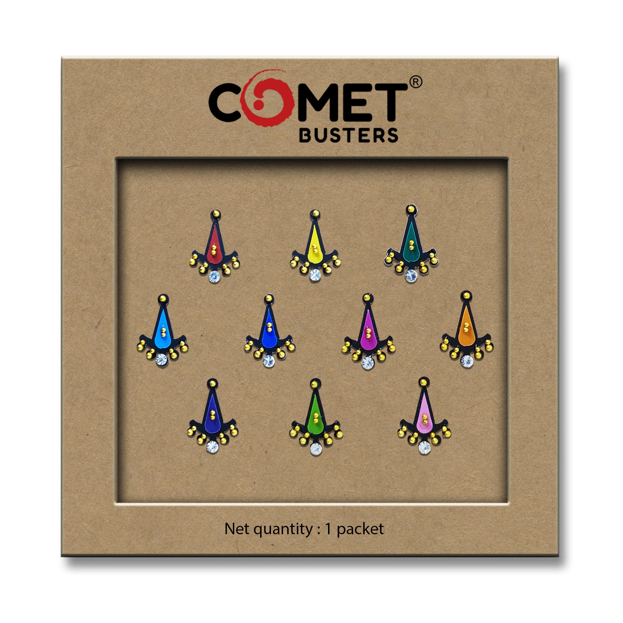 Comet Busters® Multicolor Tear Drop – Shiny Beads – Handcrafted, Reusable & Skin-Friendly Bindis for Casual Wear (12mm) – Forehead Bindi Stickers for Women & Girls – BIN813