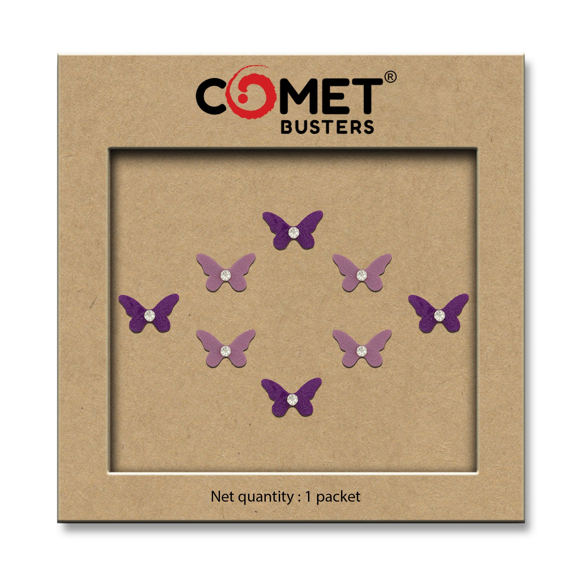 Comet Busters® Purple Butterfly – Velvet, Diamond – Handcrafted, Reusable & Skin-Friendly Bindis for Party Wear (8mm) – Forehead Bindi Stickers for Women & Girls – BIN1615