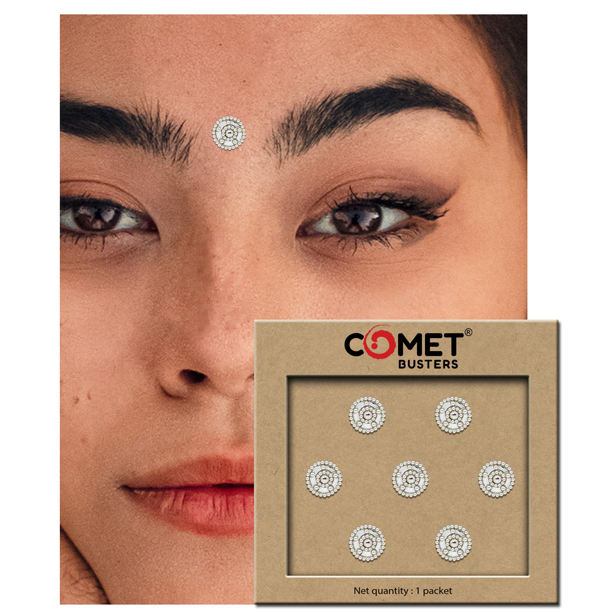 Comet Busters® Silver Round – Shiny Beads – Handcrafted, Reusable & Skin-Friendly Bindis for Party Wear (8mm) – Forehead Bindi Stickers for Women & Girls – BIN1683