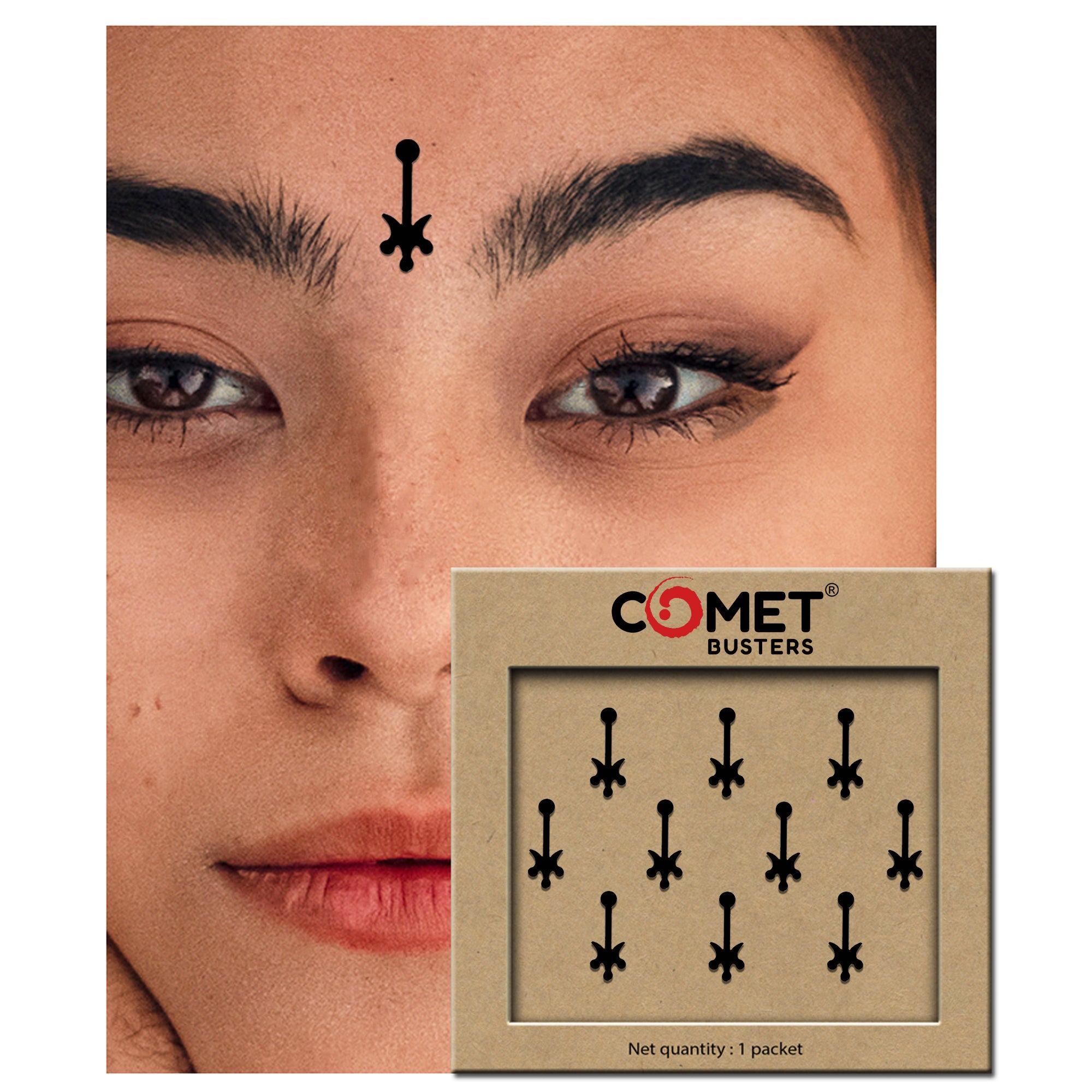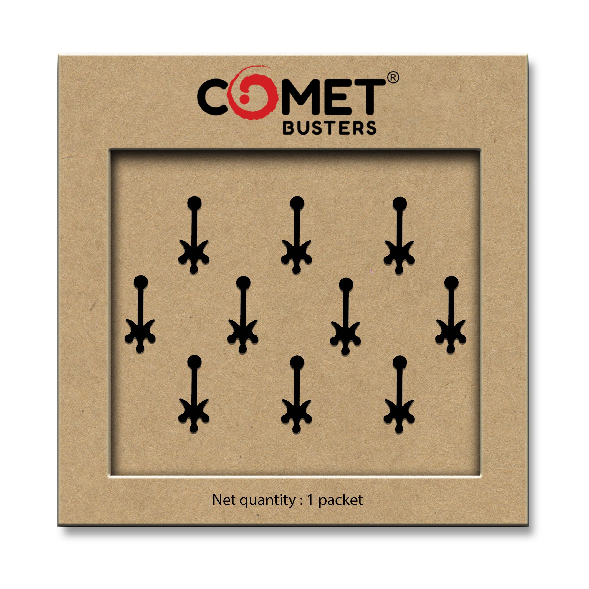 Comet Busters® Black Designer Classic Bindis – Handcrafted, Reusable, Skin-Safe Indian Forehead Stickers for Women