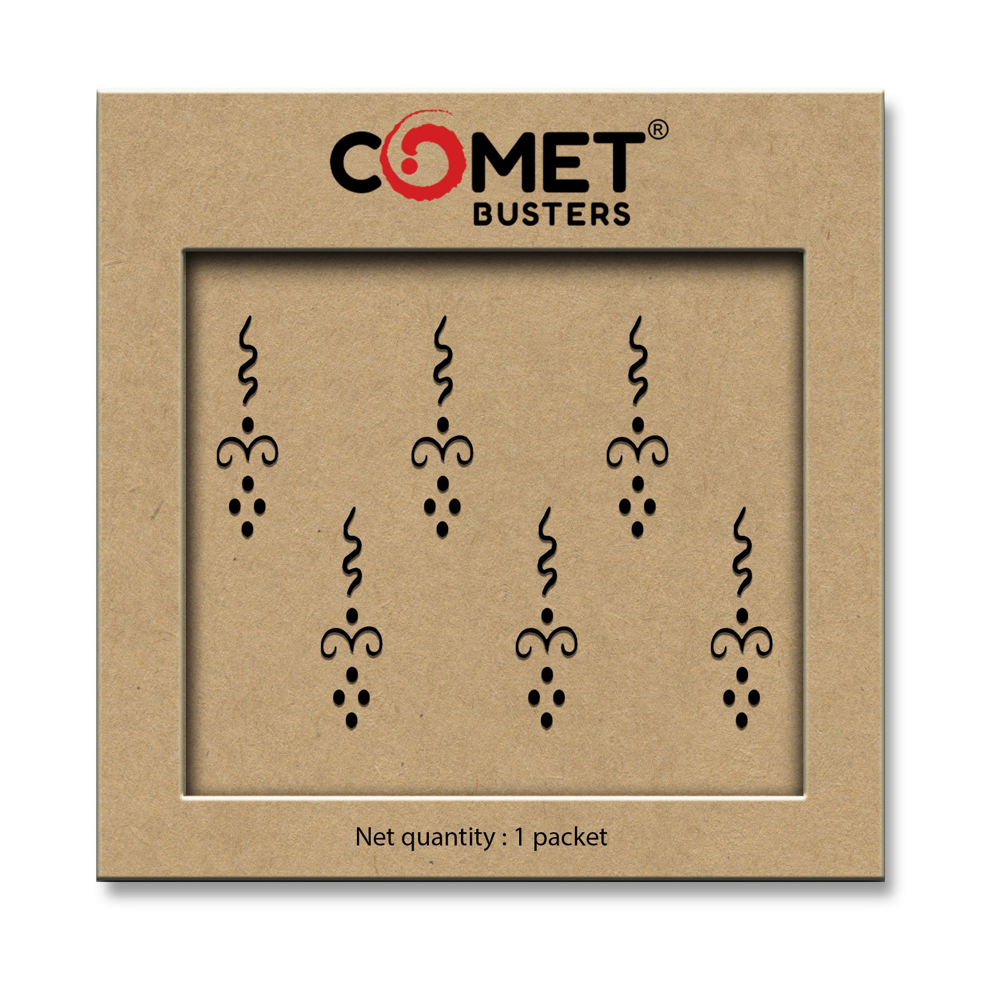 Comet Busters® Black Designer Classic Bindis – Handcrafted, Reusable, Skin-Safe Indian Forehead Stickers for Women