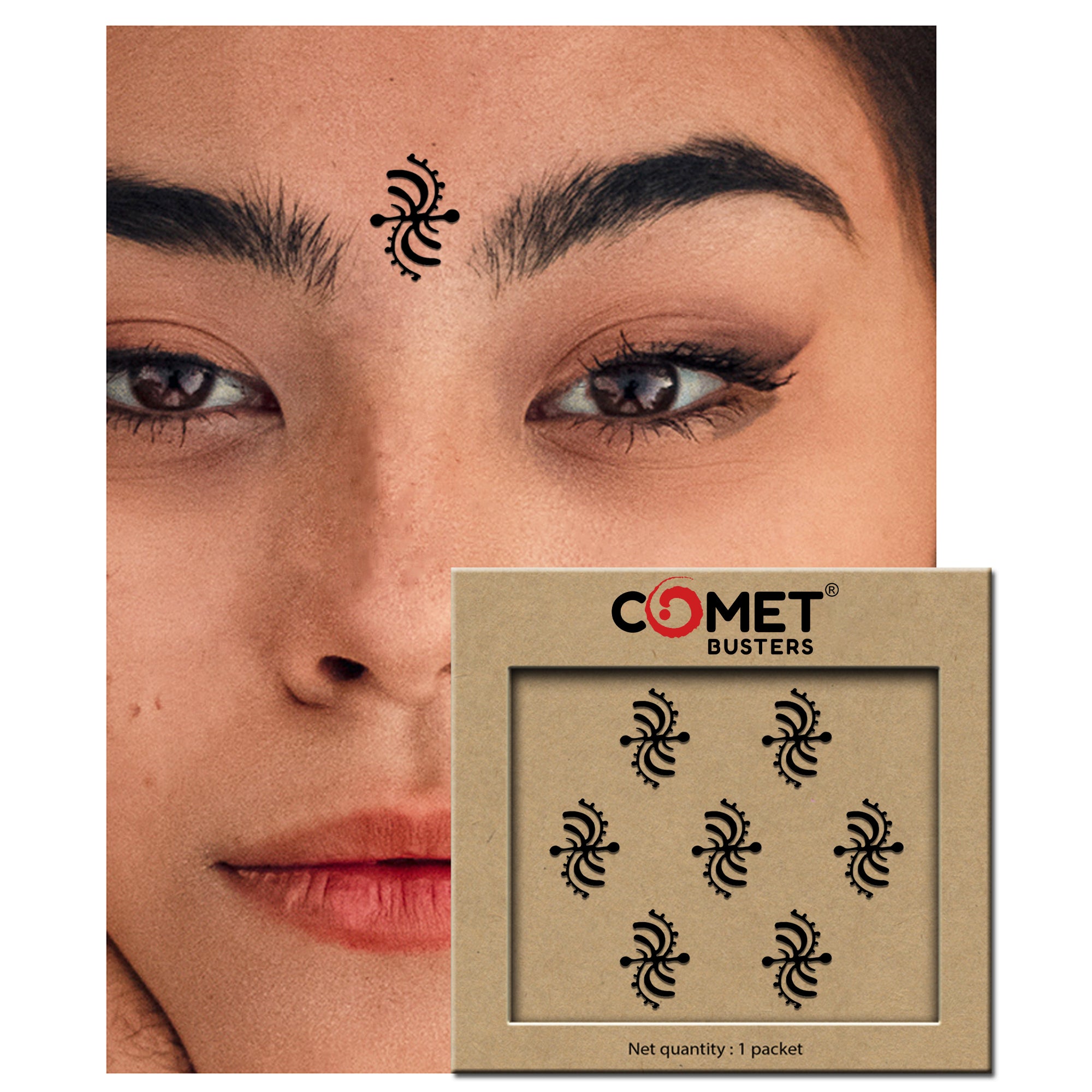 Comet Busters® Black Fusion Abstract Bindis – PVC – Handcrafted, Reusable & Skin-Friendly Bindis for Casual Wear (12mm) – Forehead Bindi Stickers for Women & Girls – BIN1335