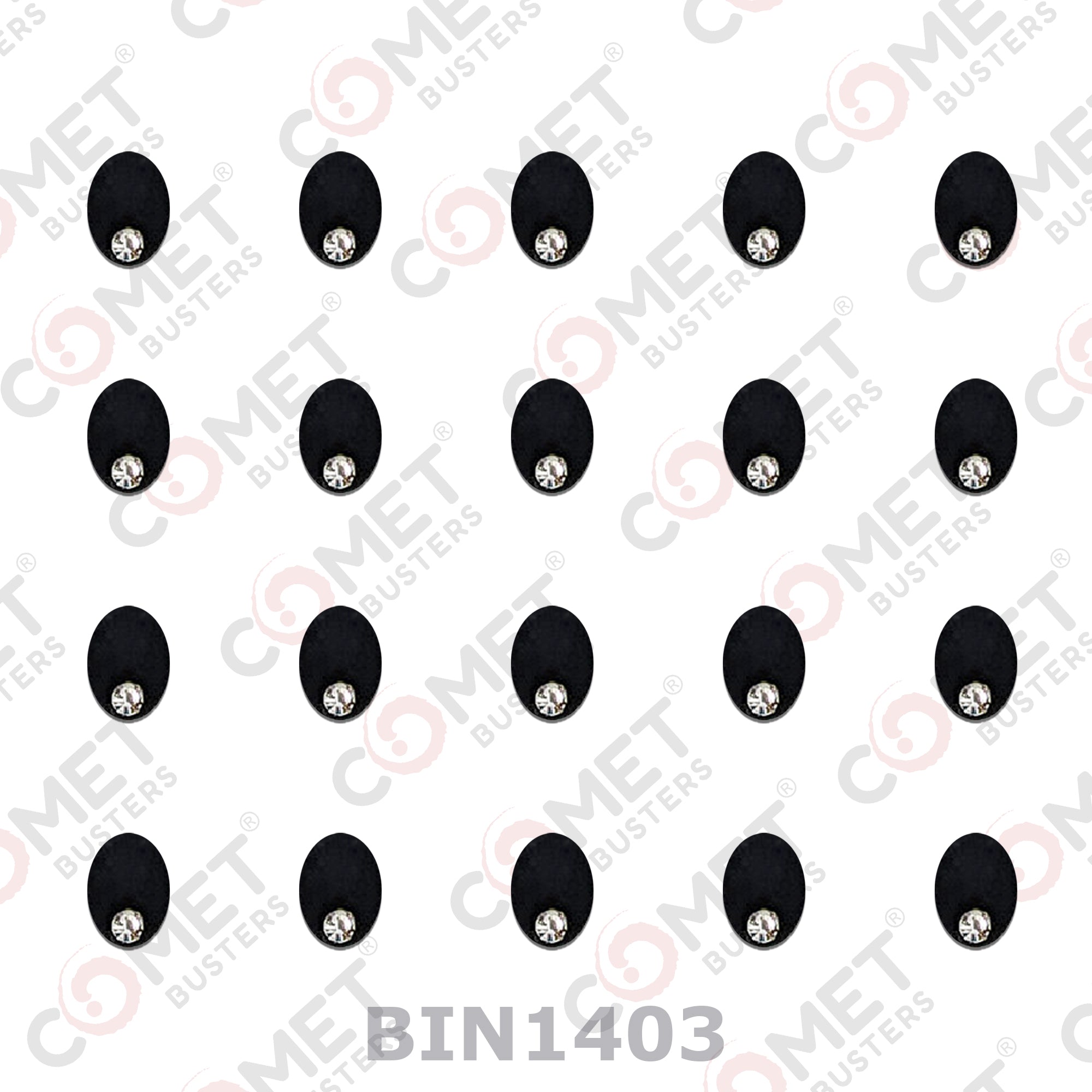 Comet Busters® Black Oval – Diamond, Velvet – Handcrafted, Reusable & Skin-Friendly Bindis for Casual Wear (5mm) – Forehead Bindi Stickers for Women & Girls – BIN1403