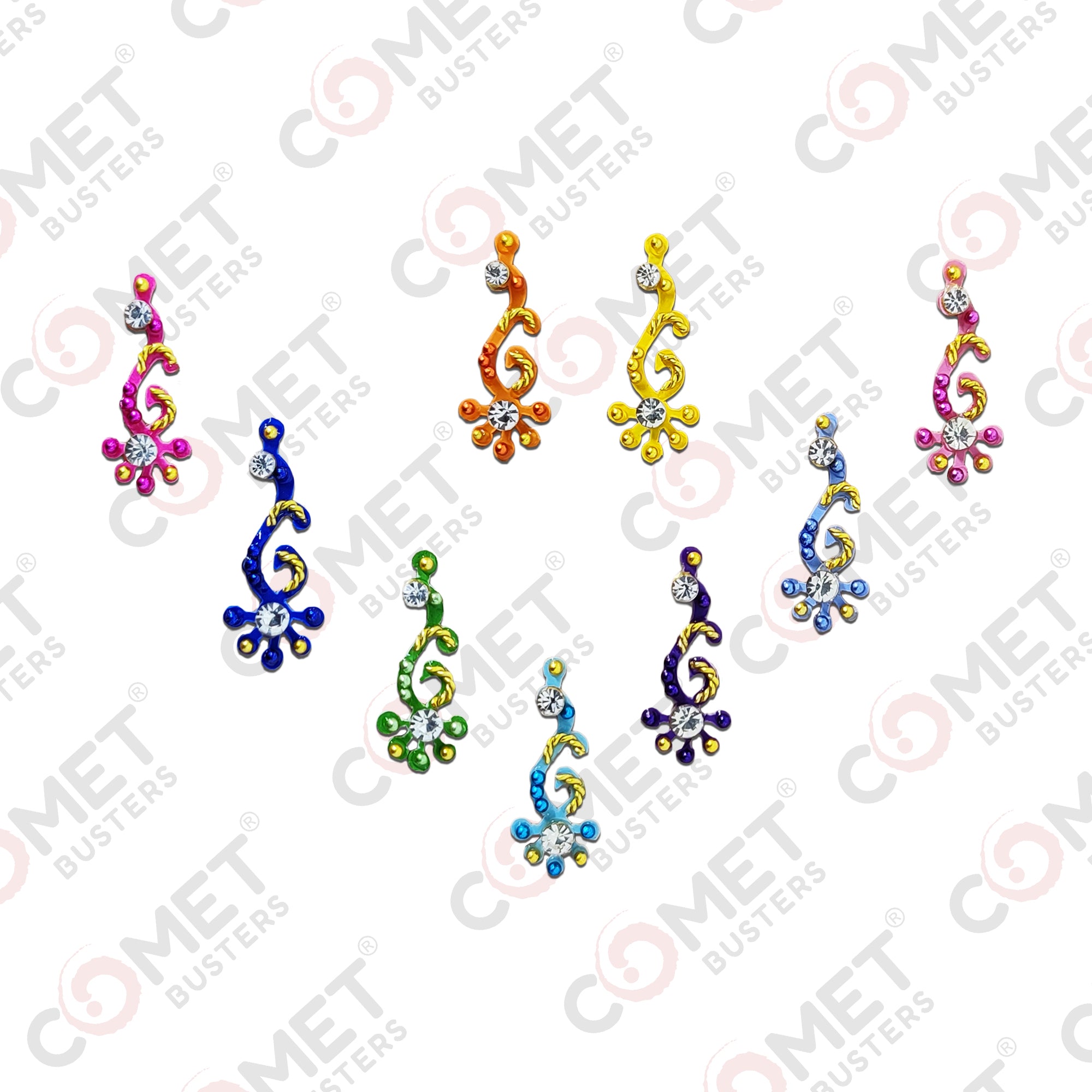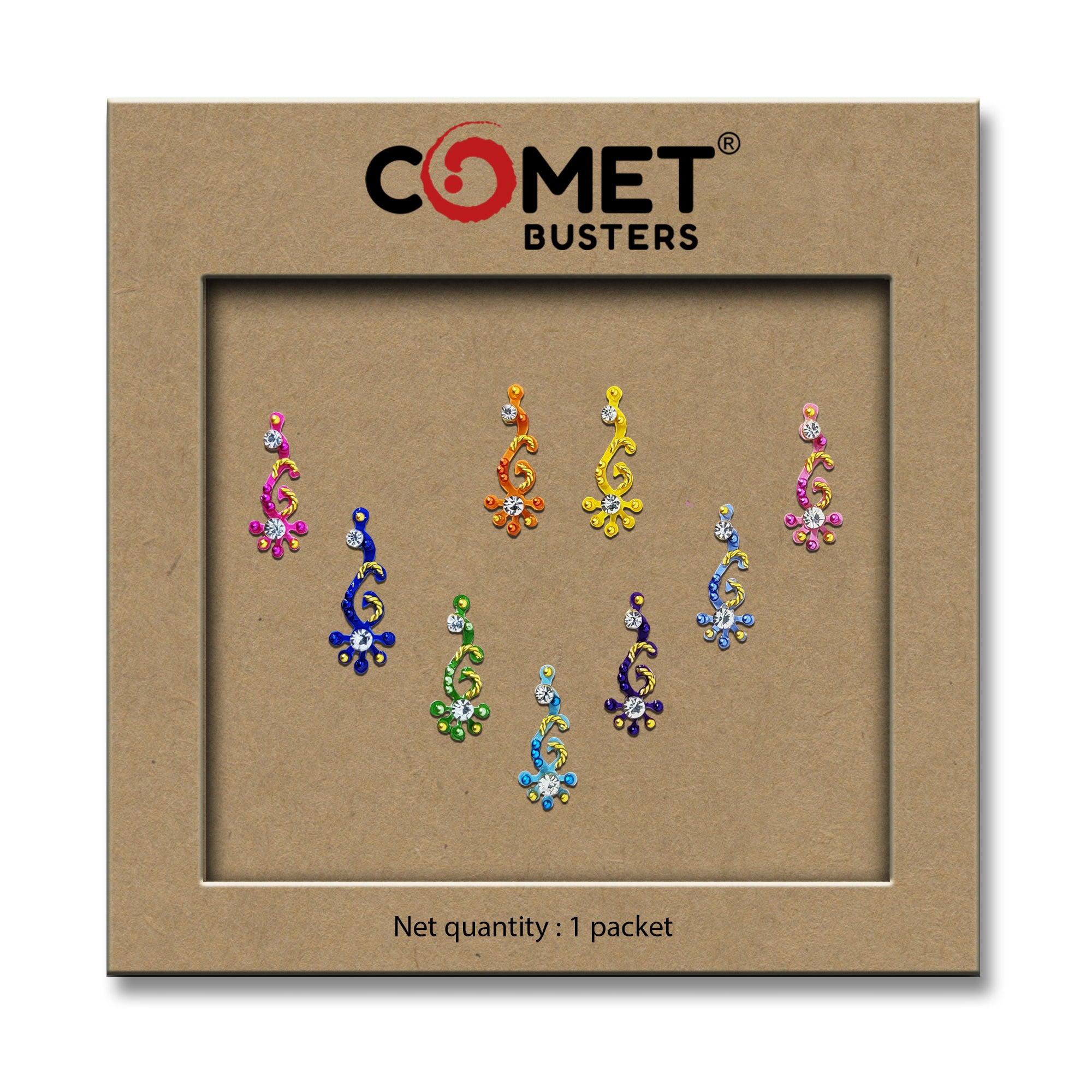 Comet Busters® Multicolor Artistic Abstract Bindis – Diamond, Shiny Beads – Handcrafted, Reusable & Skin-Friendly Bindis for Bridal Wear (15mm) – Forehead Bindi Stickers for Women & Girls – BIN003