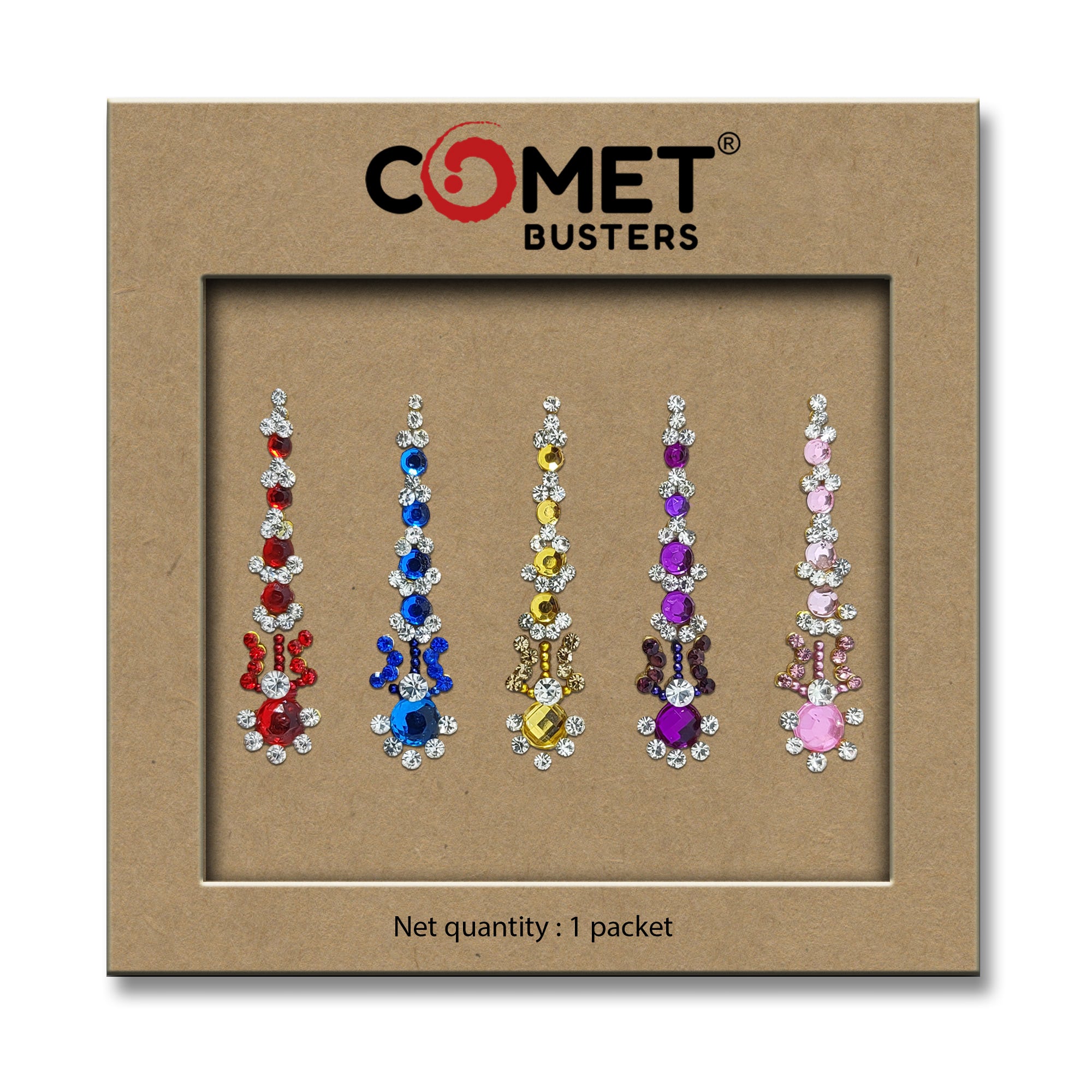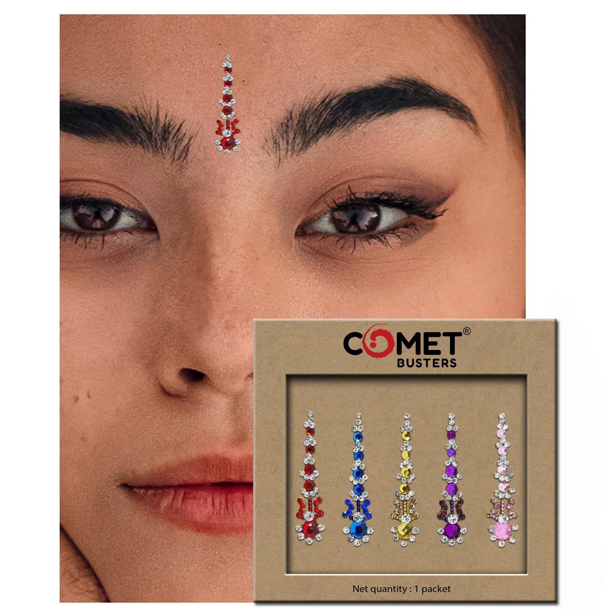 Comet Busters® Multicolor Premium – Diamond – Handcrafted, Reusable & Skin-Friendly Bindis for Bridal Wear (30mm) – Forehead Bindi Stickers for Women & Girls – BIN012