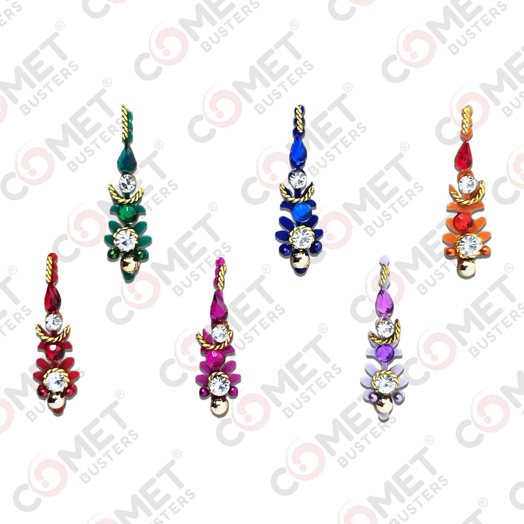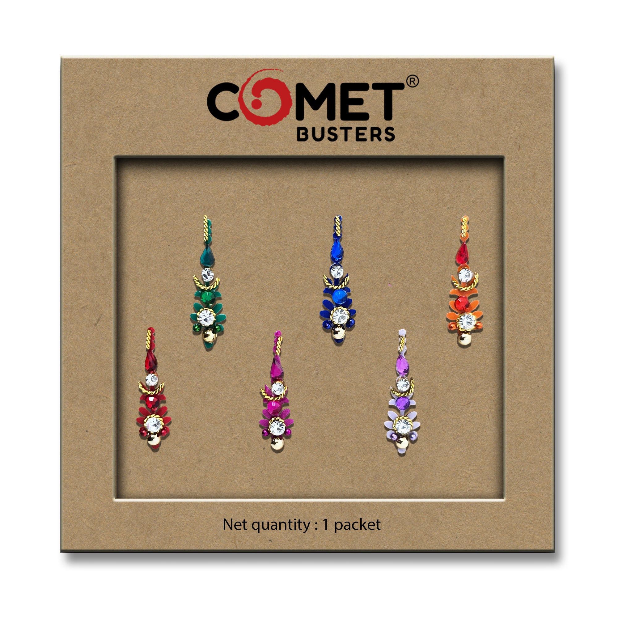 Comet Busters® Multicolor Artistic Abstract Bindis – Crystal, Diamond, Shiny Beads – Handcrafted, Reusable & Skin-Friendly Bindis for Bridal Wear (15mm) – Forehead Bindi Stickers for Women & Girls – BIN089