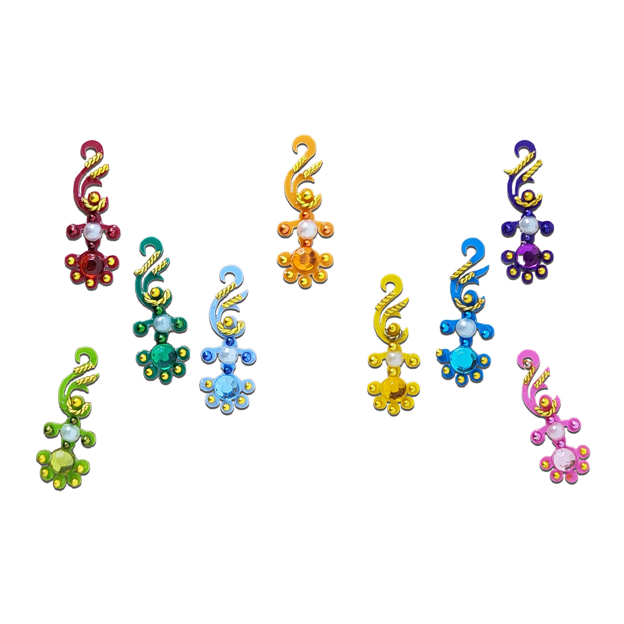 • Multicolor Bindis: Vibrant options for a lively look.