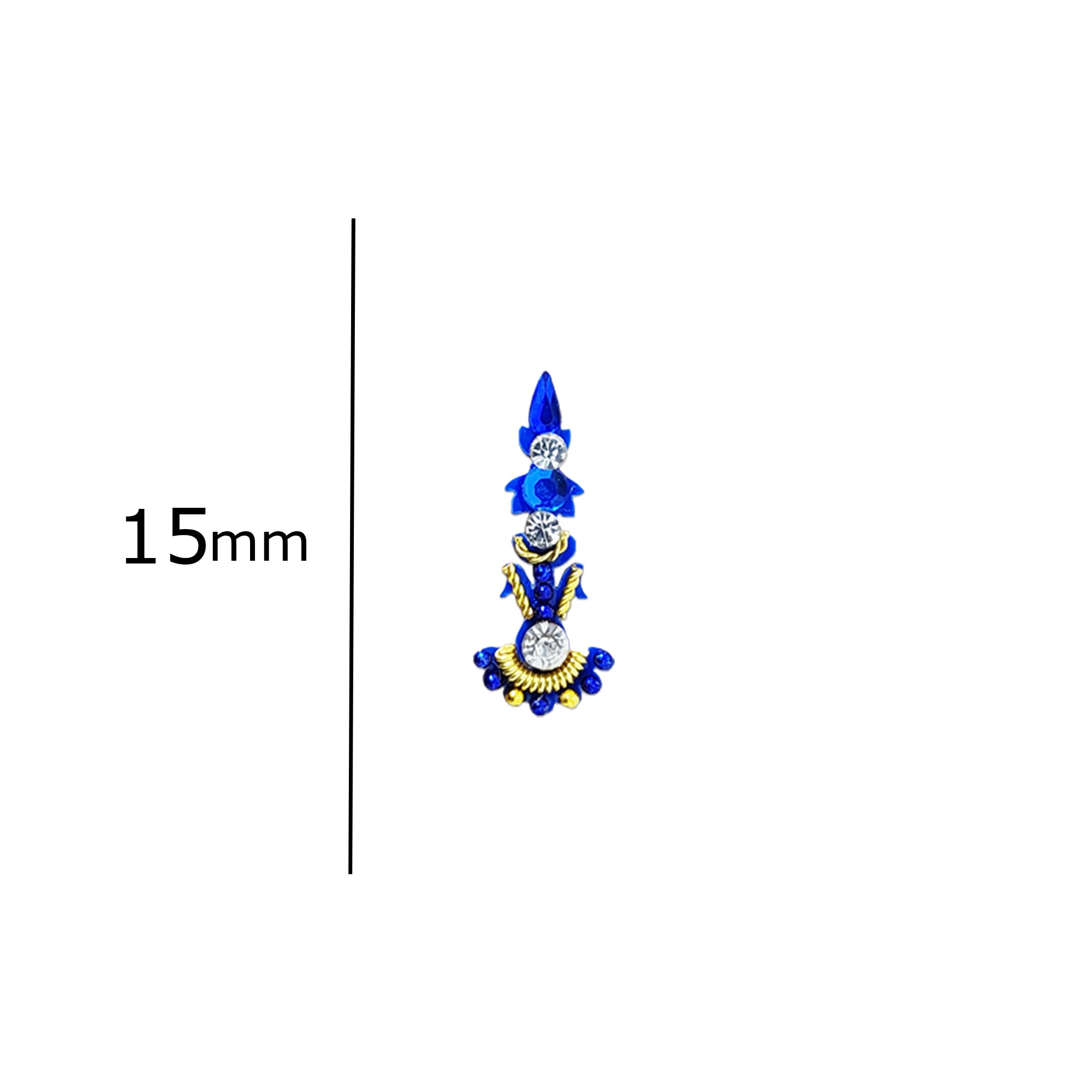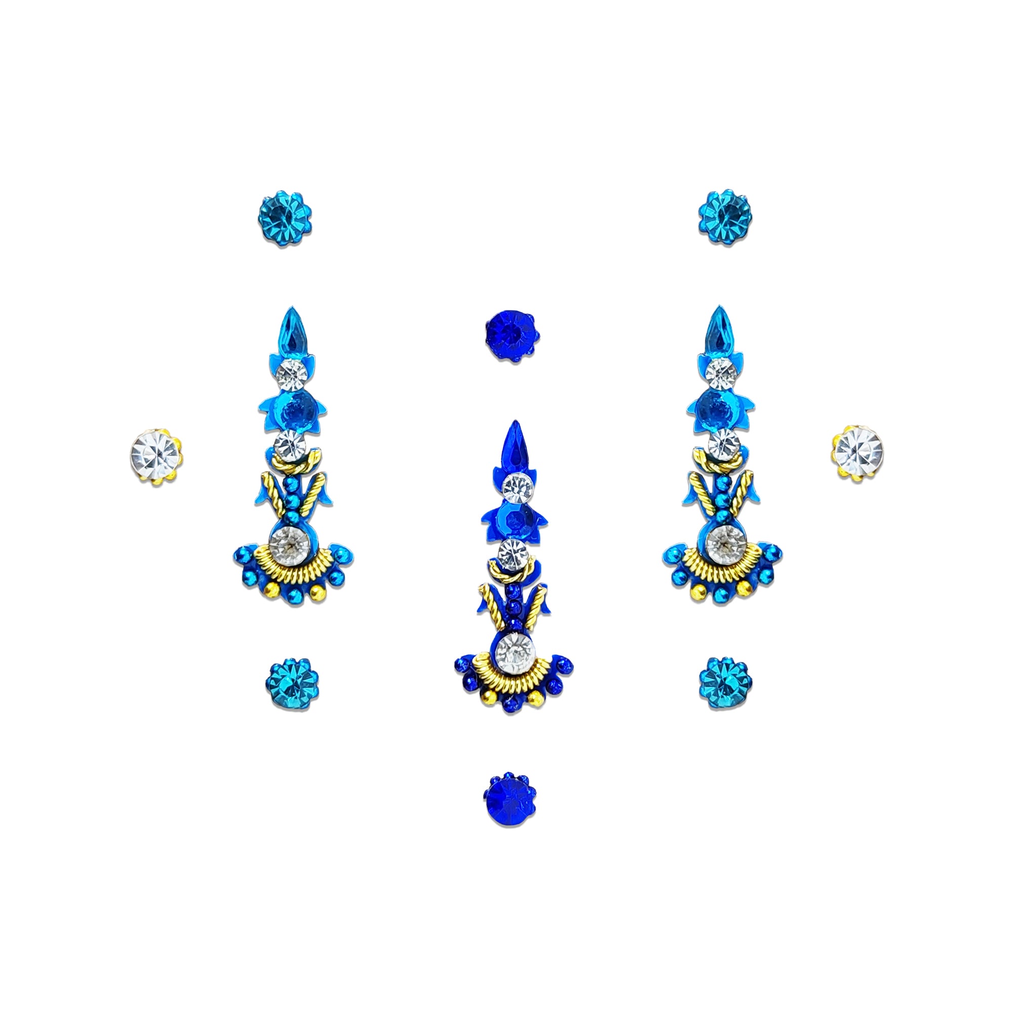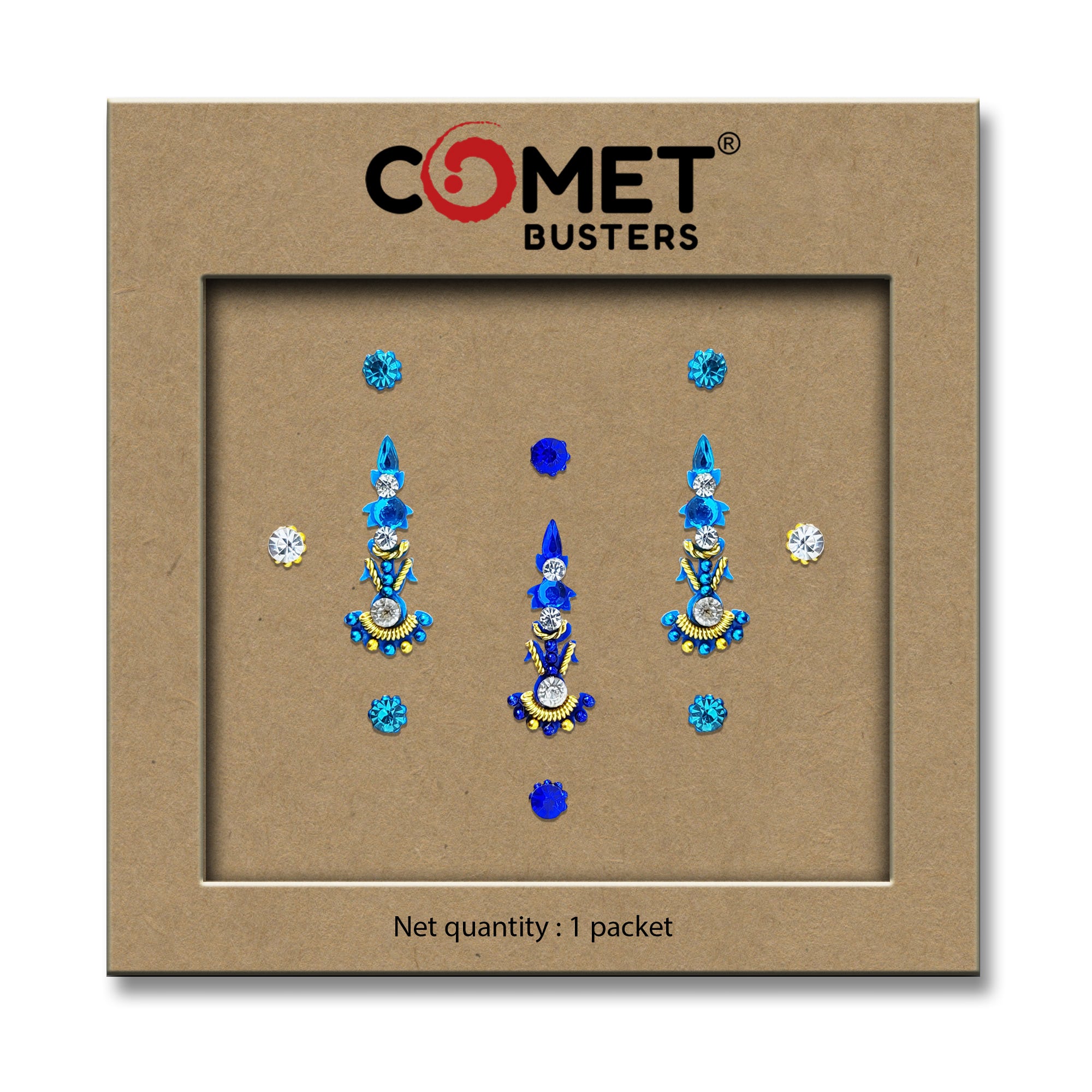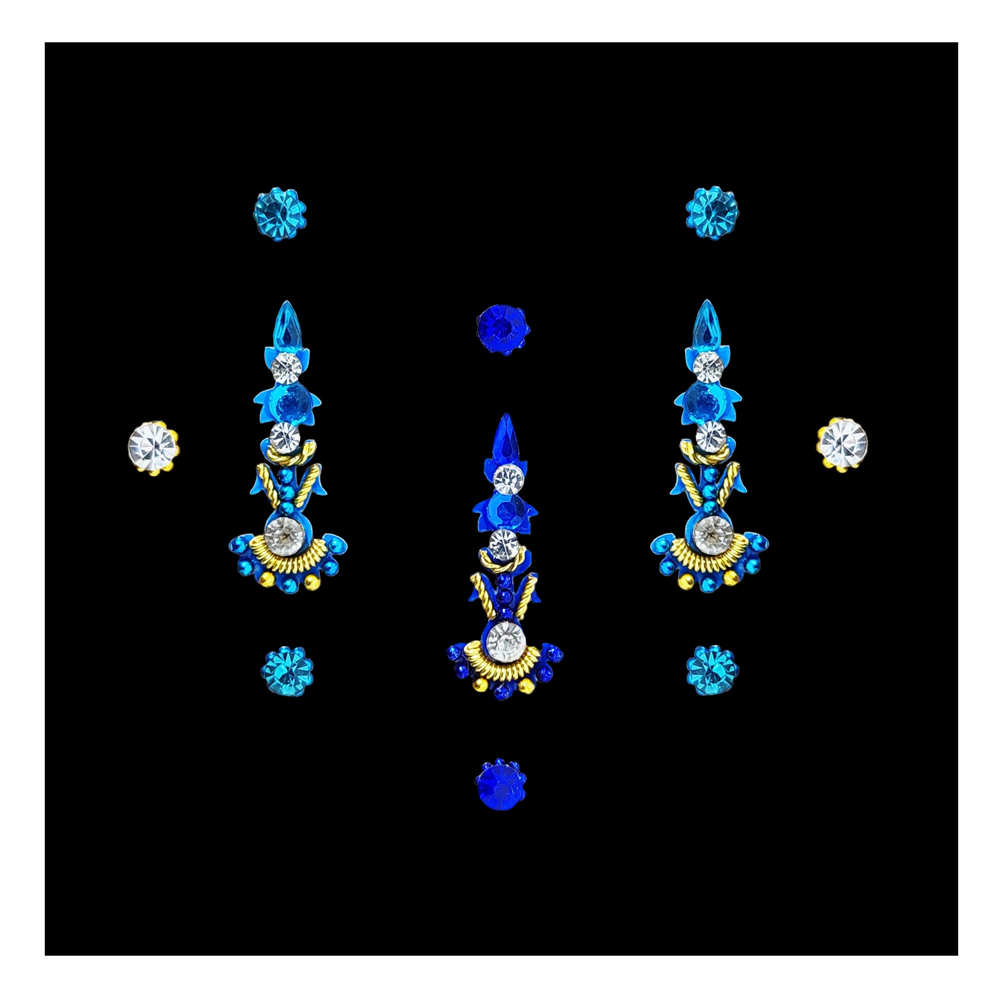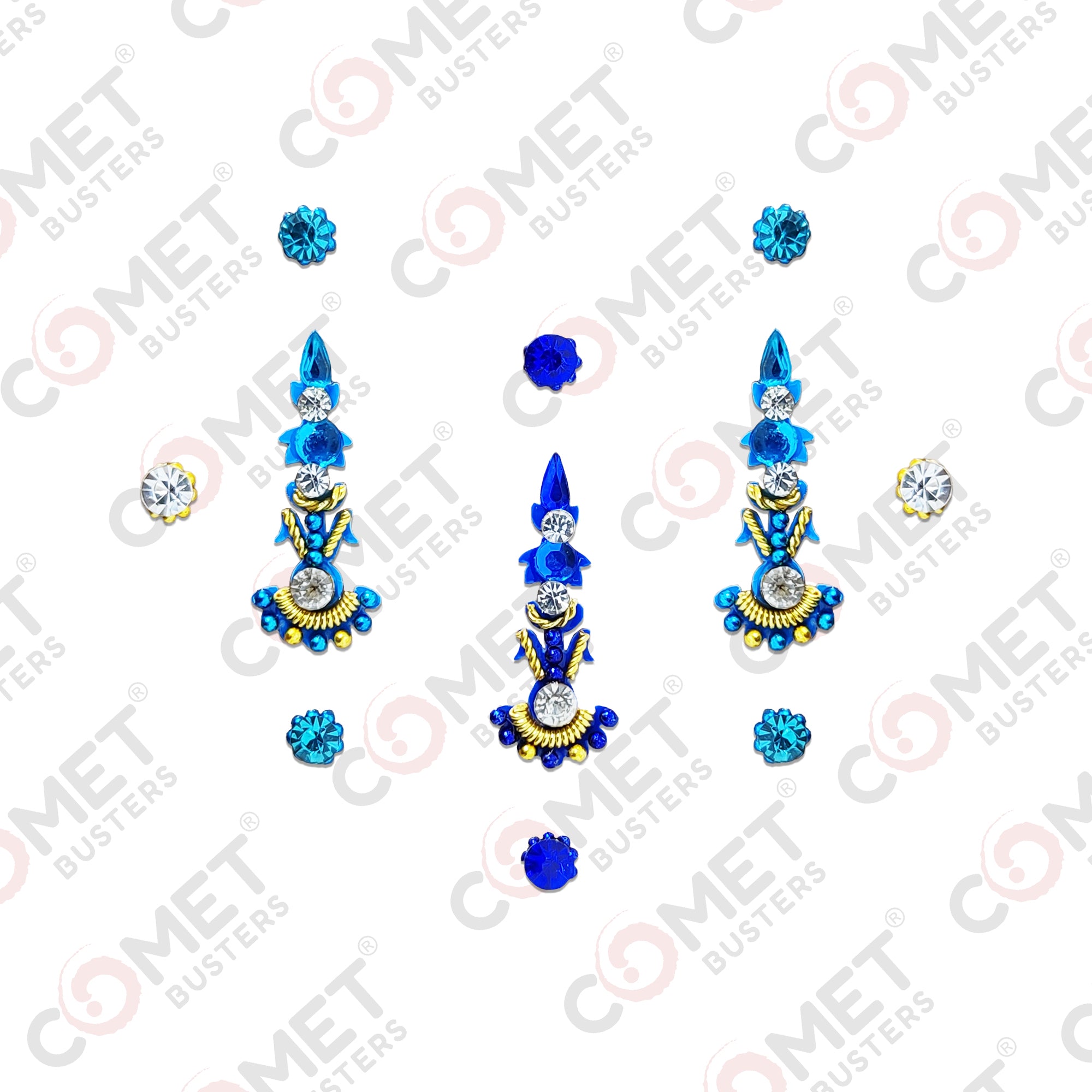 Comet Busters® Blue Artistic Abstract Bindis – Diamond, Shiny Beads – Handcrafted, Reusable & Skin-Friendly Bindis for Bridal Wear (15mm) – Forehead Bindi Stickers for Women & Girls – BIN157