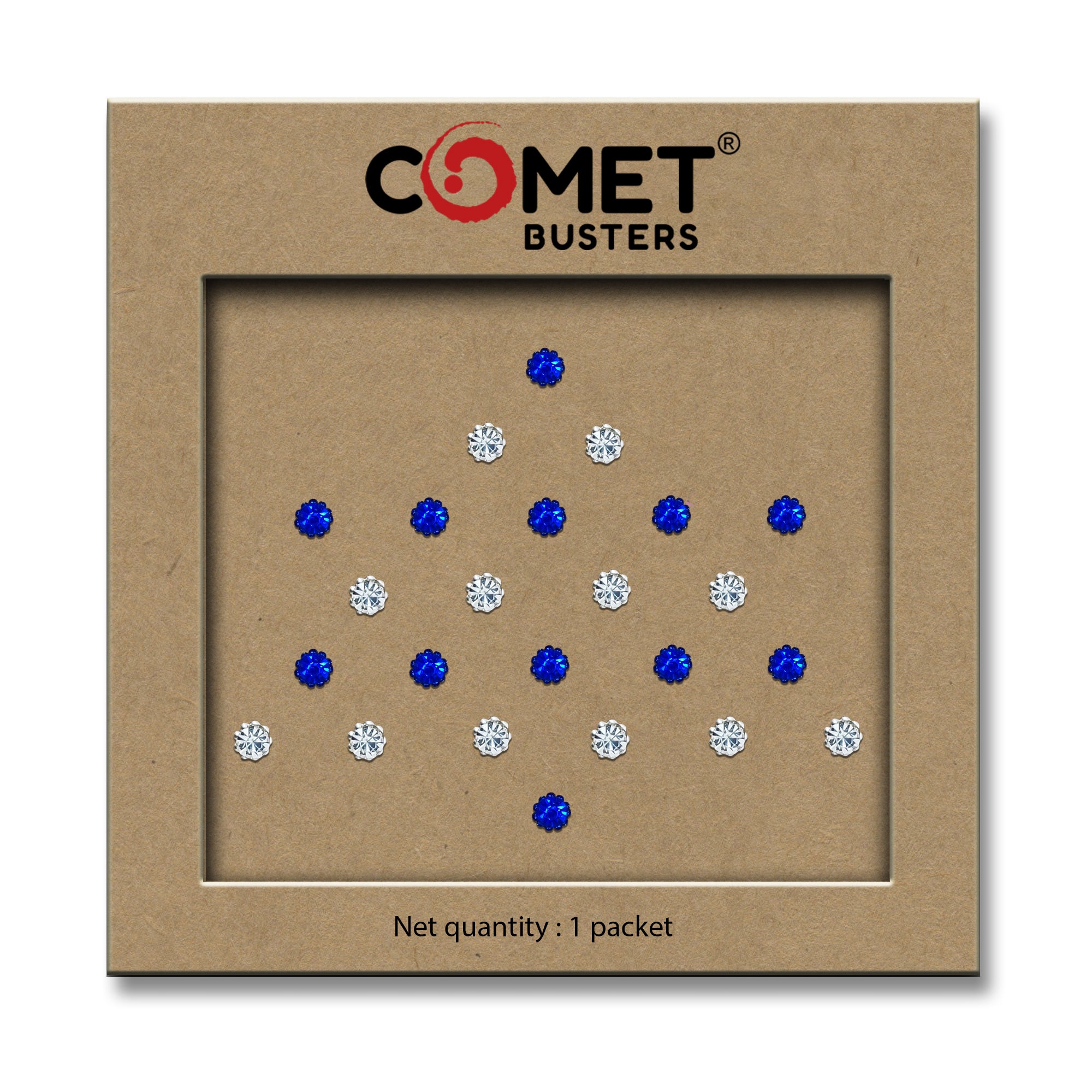 Comet Busters® Multicolor, Blue, Silver Diamond Dot – Diamond – Handcrafted, Reusable & Skin-Friendly Bindis for Casual Wear (3mm) – Forehead Bindi Stickers for Women & Girls – BIN086
